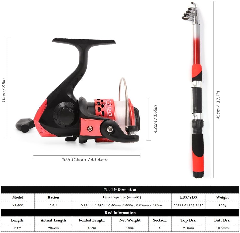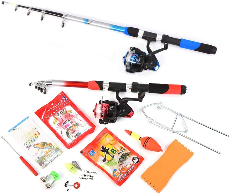 مجموعة معدات الصيد هذه صغيرة الحجم وسهلة الحمل، وتحتوي قضبان الصيد ومجموعة السفر على كل ما تحتاجه لصيد الأسماك غير الرسمي أثناء التخييم والمشي لمسافات طويلة. تشتمل المجموعة على قضيب وبكرة وطُعم وخطافات وحقيبة وأدوات صيد مجهزة تجهيزًا جيدًا.