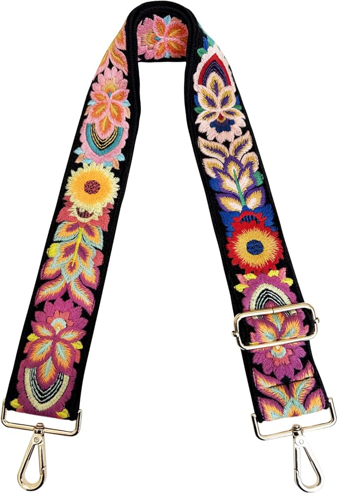 Embroidery Flower Purse Strap Replacement Crossbody for Handbags Women Guitar Strap 2 inch Wide Adjustable Bag Straps