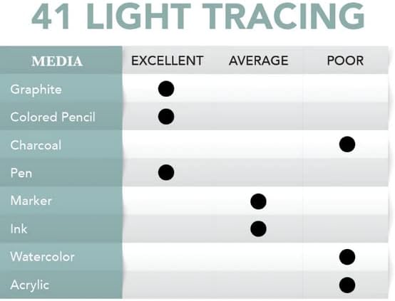 Borden And Riley #41 Monroe Triple T Parchment Tracing/Light Pad, 11" x 14", 25 lb. , 50 White Sheets, features 25 lb. lightweight parchment tracing paper. It is designed for transfer tracing, fine line drafting, sketching, engineering and architectural drawings, etc. Exceptionally clear paper and top-rated in transparency, this fine textured surface withstands repeated erasures without ghosting. Paper resists curling and wrinkling. Made in USA.
