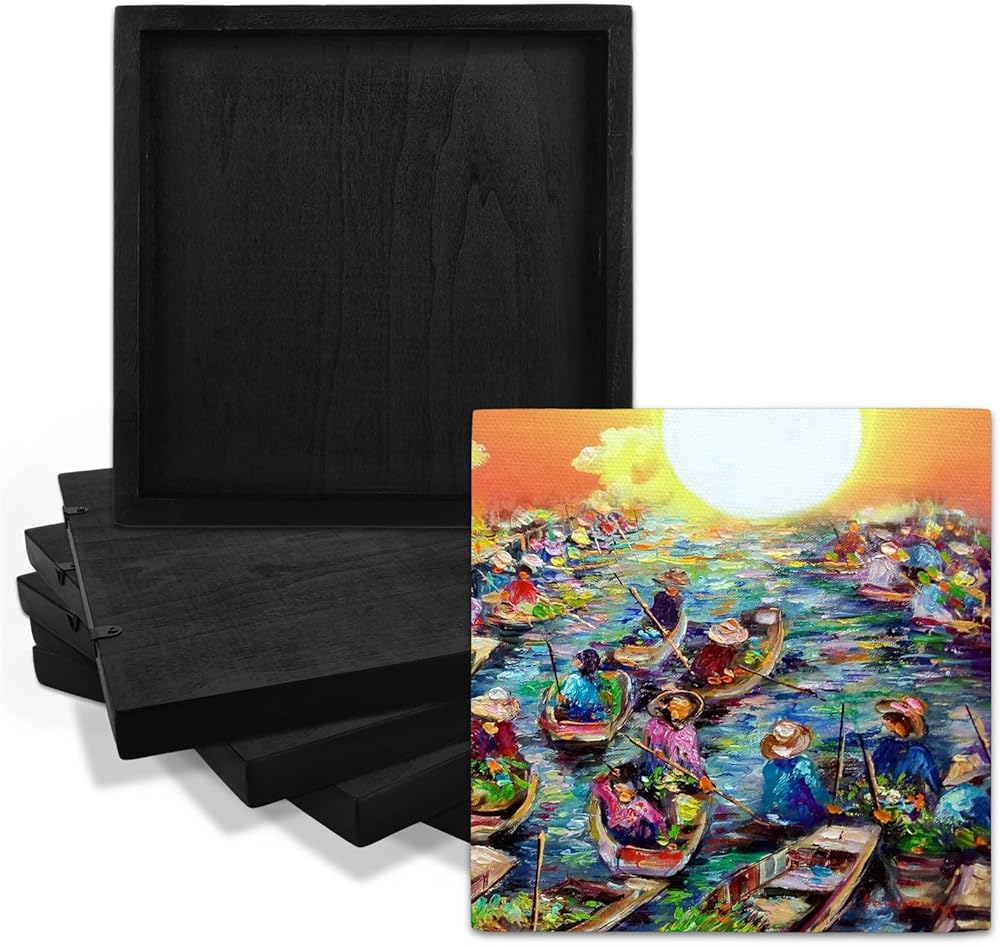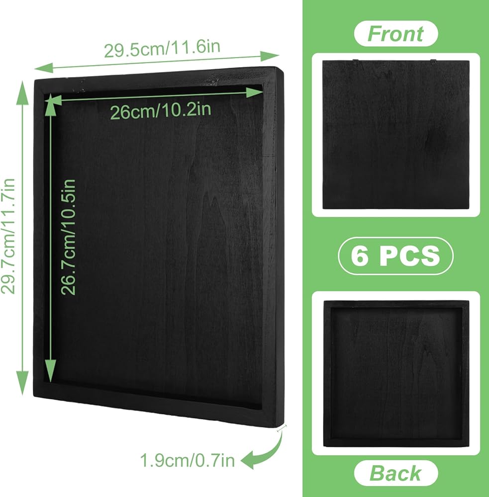 المواصفات - سوف تحصل على 6 لوحات قماشية خشبية مربعة، كل لوحة قماشية خشبية بقياس 11.8 × 11.8 بوصة من الخارج، مع سُمك قماش خشبي أسود يبلغ 0.7 بوصة.