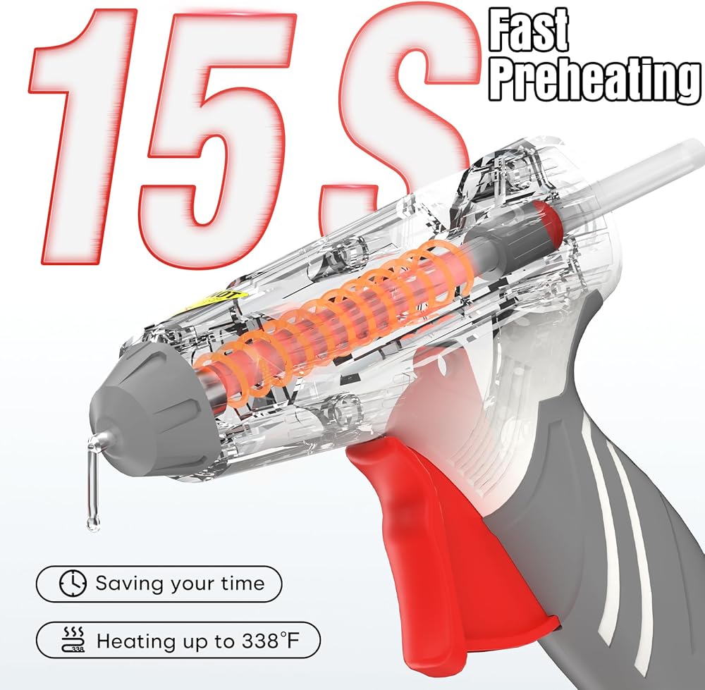 فوهة خالية من التنقيط وجسم مضاد للحرق: تم تصميم الفوهة النحاسية لتجنب التنقيط أو التسرب وضمان معدل تدفق سلس وسريع للغراء يصل إلى 0.19 أونصة/دقيقة؛ الغلاف الخارجي مصنوع من مواد مقاومة للحرارة لمنع التعرض للحروق