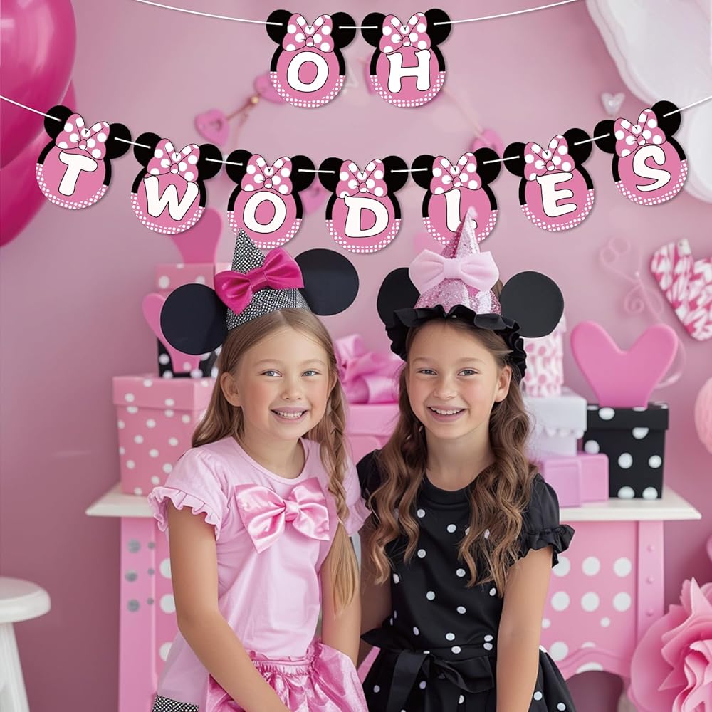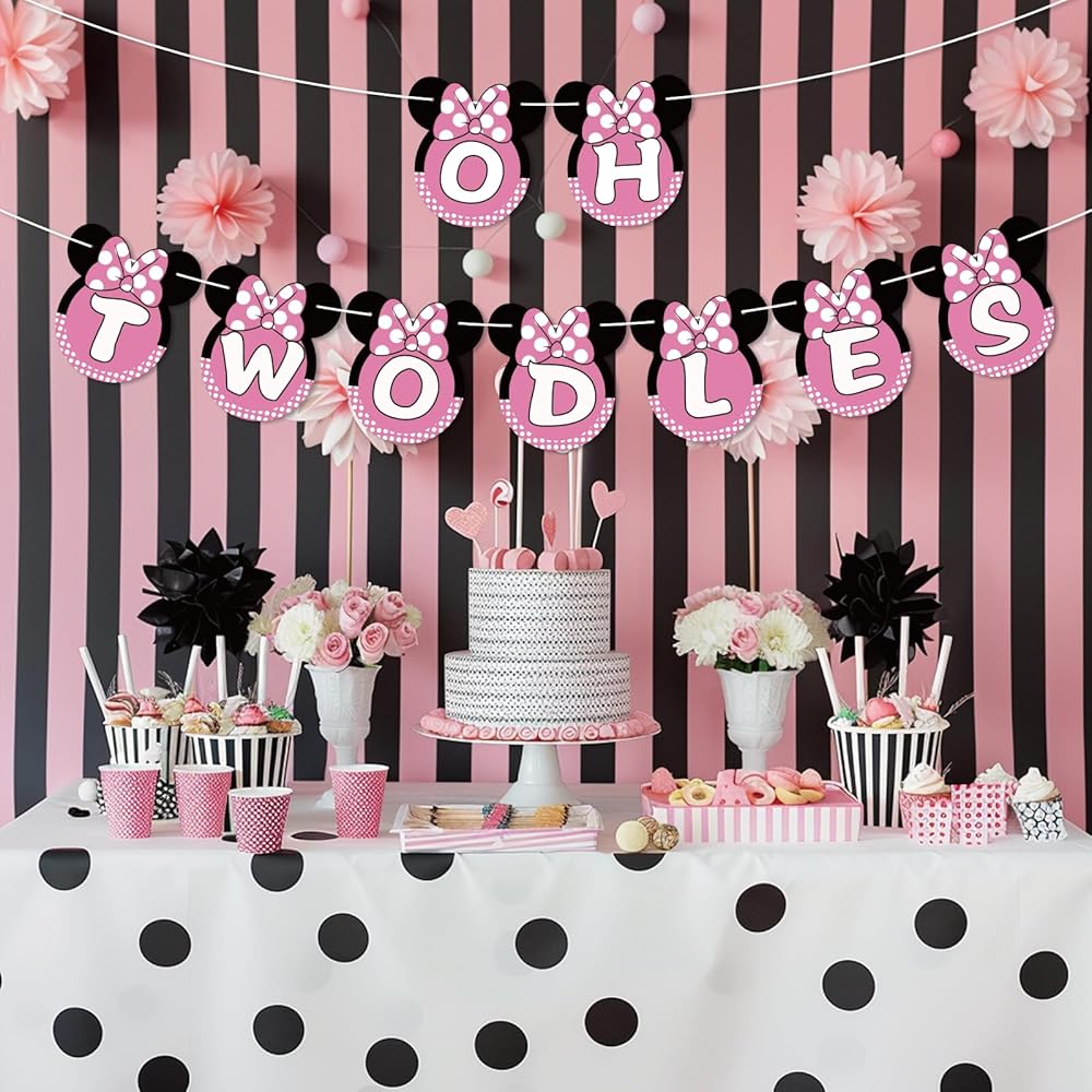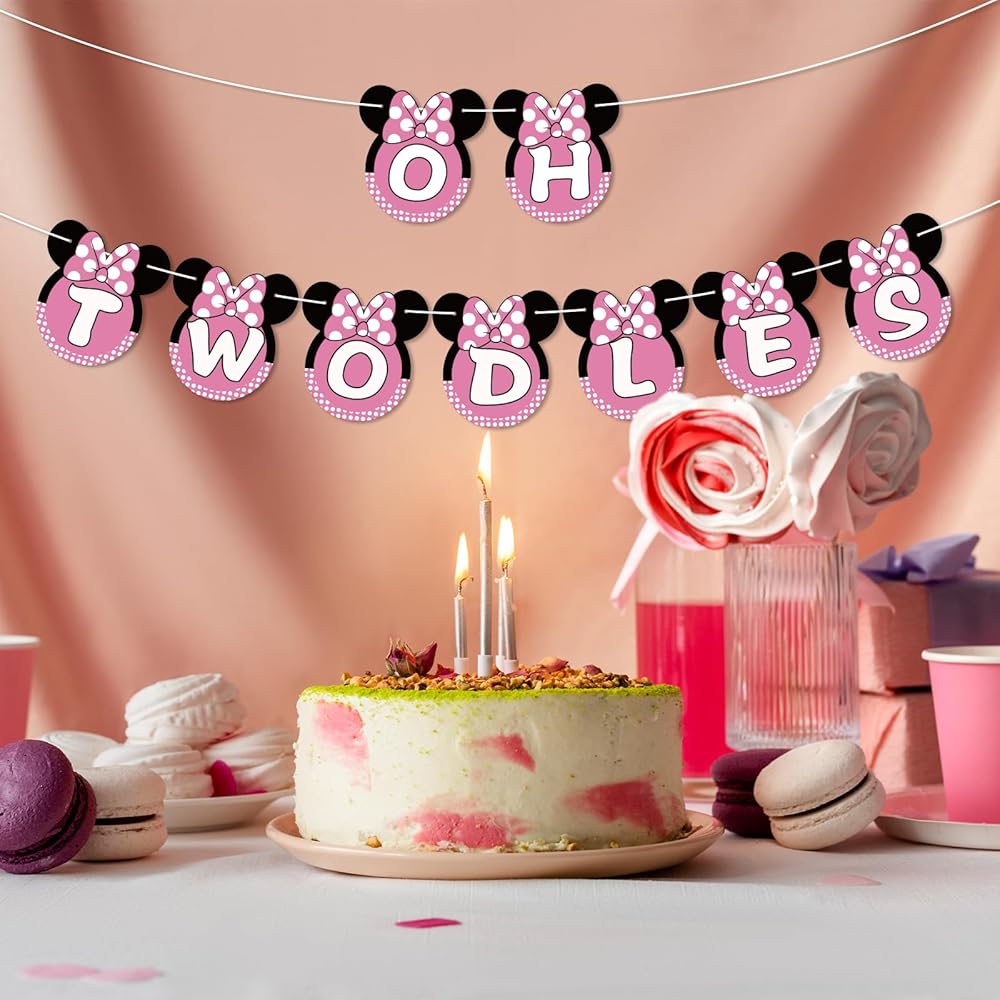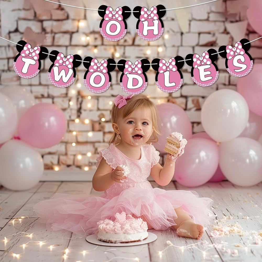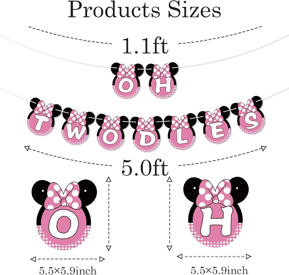 ❤️Lovely Design:Special design with lots of elements and vivid colors, which has cute mouse birthday banner. Celebrate your little one's special day with this adorable Oh Twodles Minnie Mouse Birthday Banner!