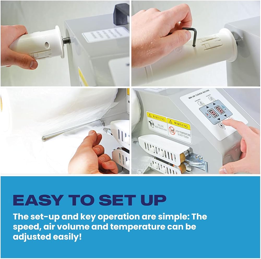 This Air Bubble Machine, aka Air Cushion Machine or Air Pillow Maker, is an easy-to-use system that allows you to produce air cushions on demand. Also, great for large volume goods, packaging wine bottles, glass products, ceramics, and fragile items. The Printfinish Air Pillow Machine is a heavy-duty solution great for e-commerce and logistic companies seeking to improve their work efficiency and ensure that's hipped products don't get damaged during storage and transportation. Meet the high-quality Super Fast Air Pillow Machine Up to 52ft per Minute - Easy to Use, Fast Heating and Inflating - Air Pillow Maker Inflatable Packaging.