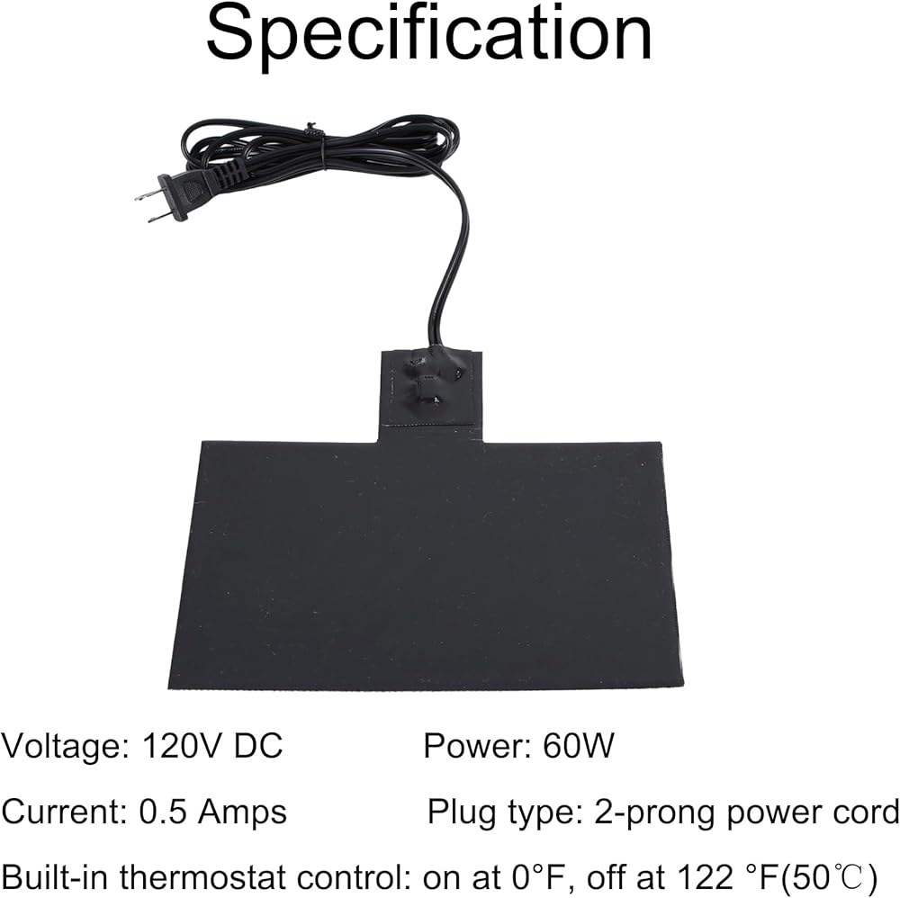 التحكم الحراري: تتميز وسادة سخان البطارية هذه بمنظم حرارة (يعمل عند 0 درجة فهرنهايت، ويغلق عند 122 درجة فهرنهايت (50 درجة مئوية) لتنظيم درجة الحرارة ومنع ارتفاع درجة الحرارة.