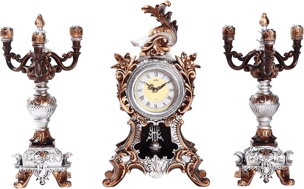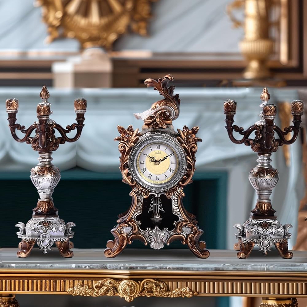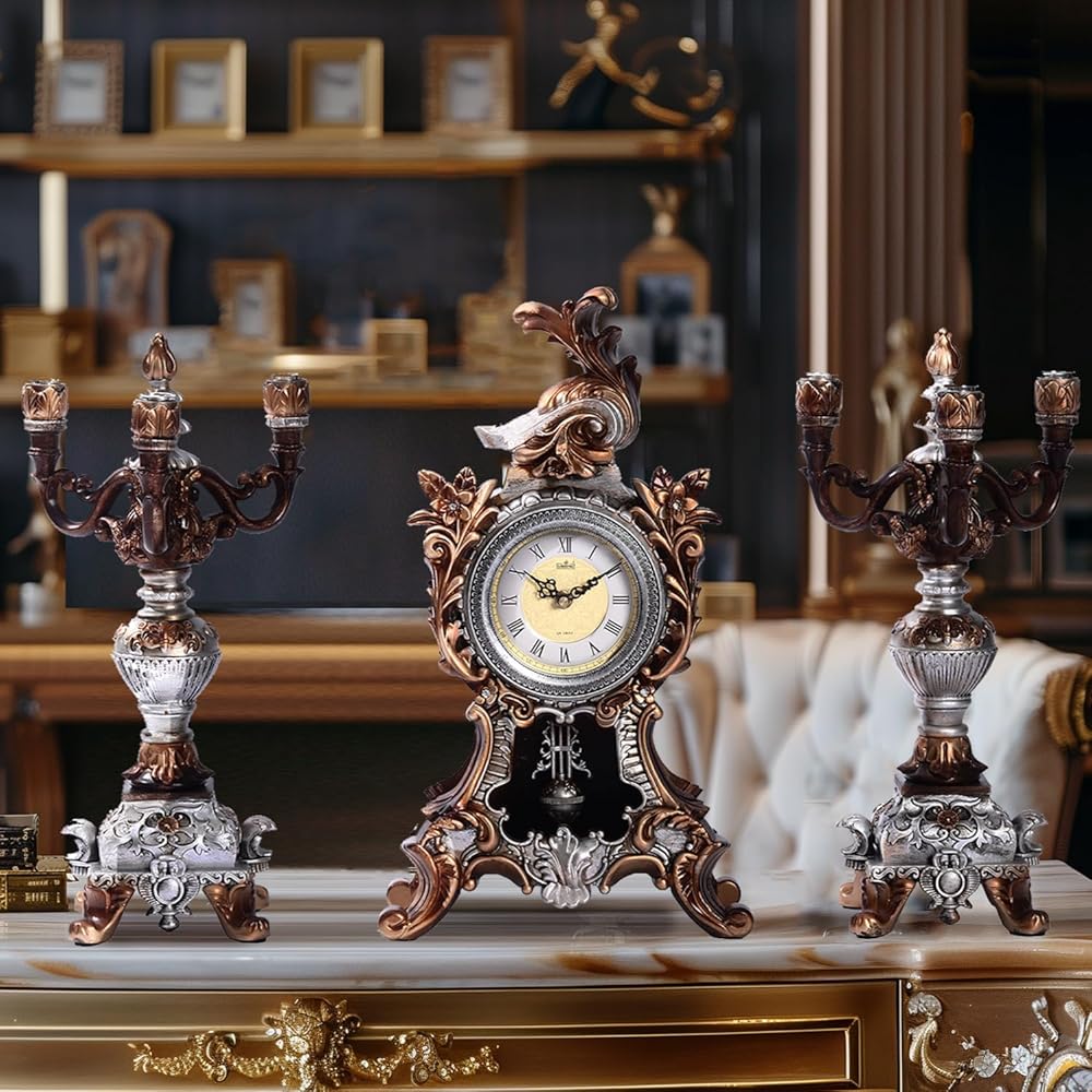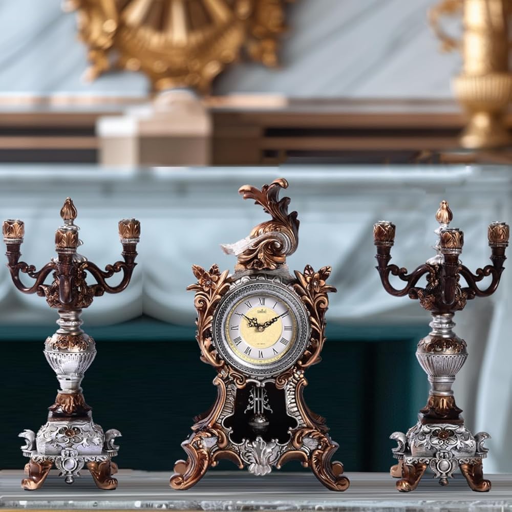 مجموعة قطع مركزية مثالية: الساعة المصممة بشكل جميل والشمعدانتين المتطابقتين، تمثل هذه المجموعة قطعة مركزية مذهلة لغرفة المعيشة أو الدراسة أو منطقة تناول الطعام، مما يرفع الأجواء بحضورها الأنيق.