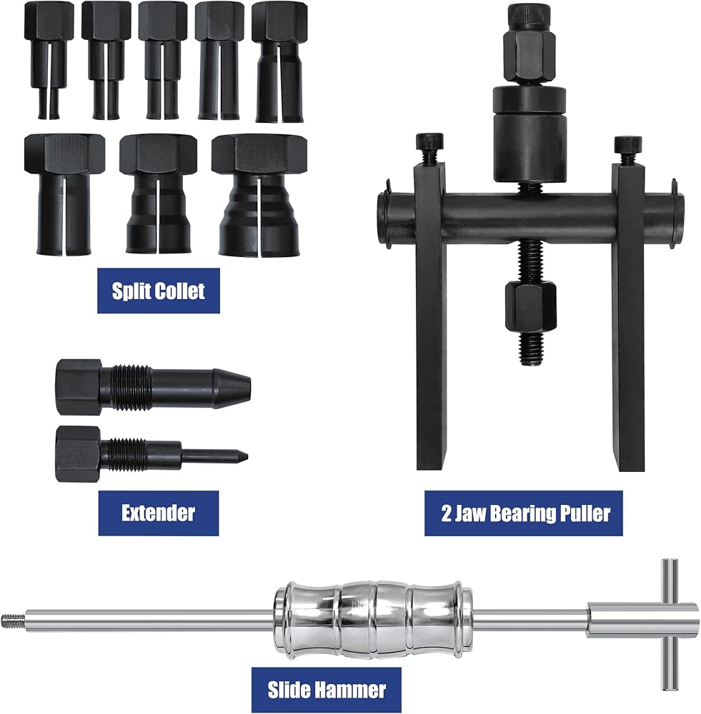 【سهلة الاستخدام】اختر كوليه مقسم مطابق، وأغلقه في السباق الداخلي، ثم اسحب وزن المطرقة المنزلقة لإخراج المحمل. أو يمكنك استخدام ساحب محمل الفك ومفتاح الربط لاستخراج المحمل
