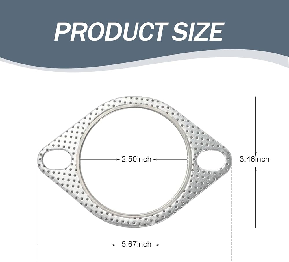 What's in The Box: You will receive two 2.5" long eye two-hole car exhaust pipe interface gaskets. If you have any questions about the product, please leave us a message and we will help you.