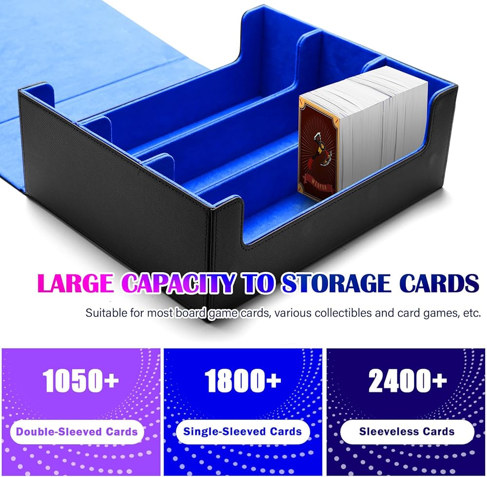【سعة كبيرة لبطاقات التخزين】: حجم حافظة بطاقات السطح هو 29x24x10.4 سم/11.4x9.4x4.1 بوصة، مصممة بمقصورات ثلاثية، حجم كبير لسهولة التخزين 1050+ بطاقة مزدوجة الأكمام، 1800 + بطاقات بأكمام واحدة، 2400+ بطاقات بلا أكمام. يرجى ملاحظة: غير مناسب للحامل العلوي وحامل البطاقة المغناطيسية.
