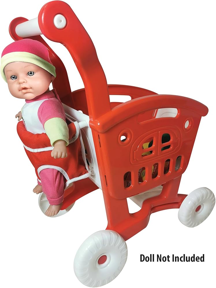 FOOD ACCESSORIES: Elevate the play experience with seamless enjoyment, as this doll set comes complete with accessories like a spot to hold your baby doll and pretend play food items to make the shopping experience even more enjoyable!