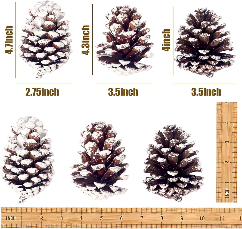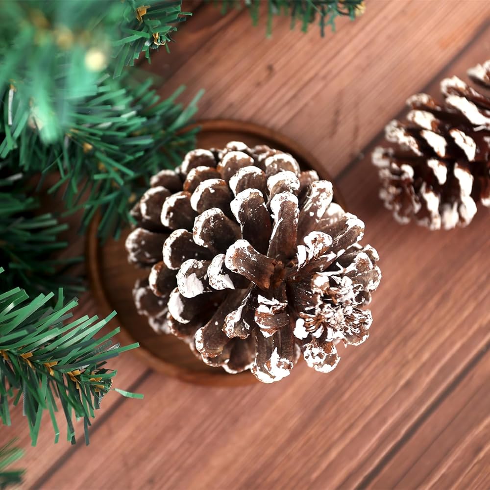 • أفكار تزيين رائعة - تعتبر مخاريط الصنوبر الثلجية الكبيرة هذه مثالية لتزيين شجرة الكريسماس، وإكليل الكريسماس، والروطان، والطاولة، والجدار، والباب، وما إلى ذلك، مما يخلق جوًا قويًا لعطلة الشتاء.