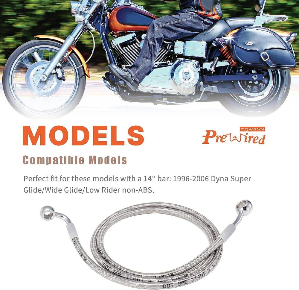 • احصل على هذا الملاءمة المثالية: إذا كنت تهتز بمقود أو رافعات أطول، فإن مجموعتنا تدعمك. يعد خط فرامل Dyna الأمامي في هذه المجموعة أطول من كابلات المخزون لديك. فقط تأكد من التحقق جيدًا من توافق طراز دراجتك قبل الشراء، شكرًا.