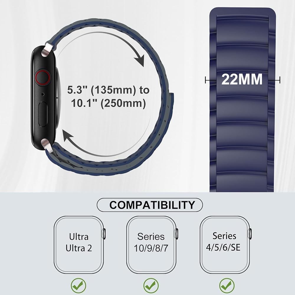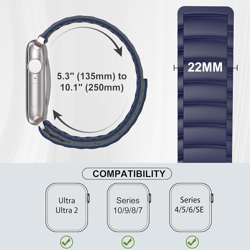 【متوافقة مع جميع الموديلات لساعة Apple Watch] أحزمة مغناطيسية متوافقة مع أشرطة iwatch 45 مم 46 مم 44 مم 49 مم ألترا/ألترا 2، السلسلة 10، السلسلة 9، السلسلة 8، السلسلة 7، SE، السلسلة 6، السلسلة 5، السلسلة 4. تناسب 5.3-10.1 بوصة المعصم (135 ملم - 250 ملم)