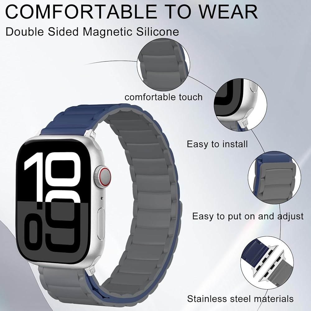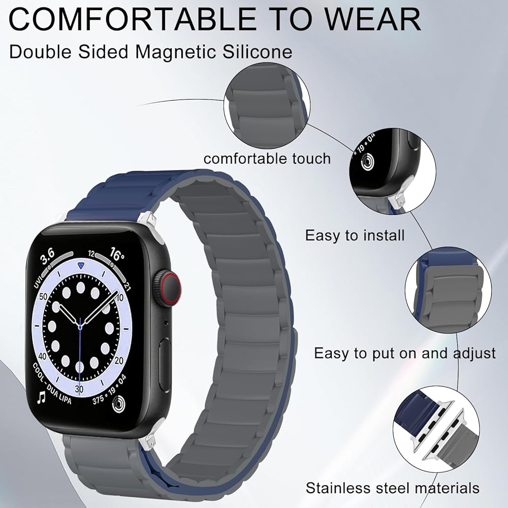 【تميز عن الجماهير】شريط قابل للتحويل على الوجهين يتخلص من الوزن الضخم للأشرطة العادية المصنوعة من الفولاذ المقاوم للصدأ. إنه حزام حلقة مغناطيسي أنيق من السيليكون قابل للتعديل لساعة iWatch ويأتي بألوان متعددة لتناسب ذوقك الشخصي. مثالي للارتداء كإكسسوار في اجتماعات العمل والحفلات، كما أنه رائع لأعياد الميلاد وعيد الحب وعيد الأم والكريسماس وعيد الشكر وغيرها من العطلات.