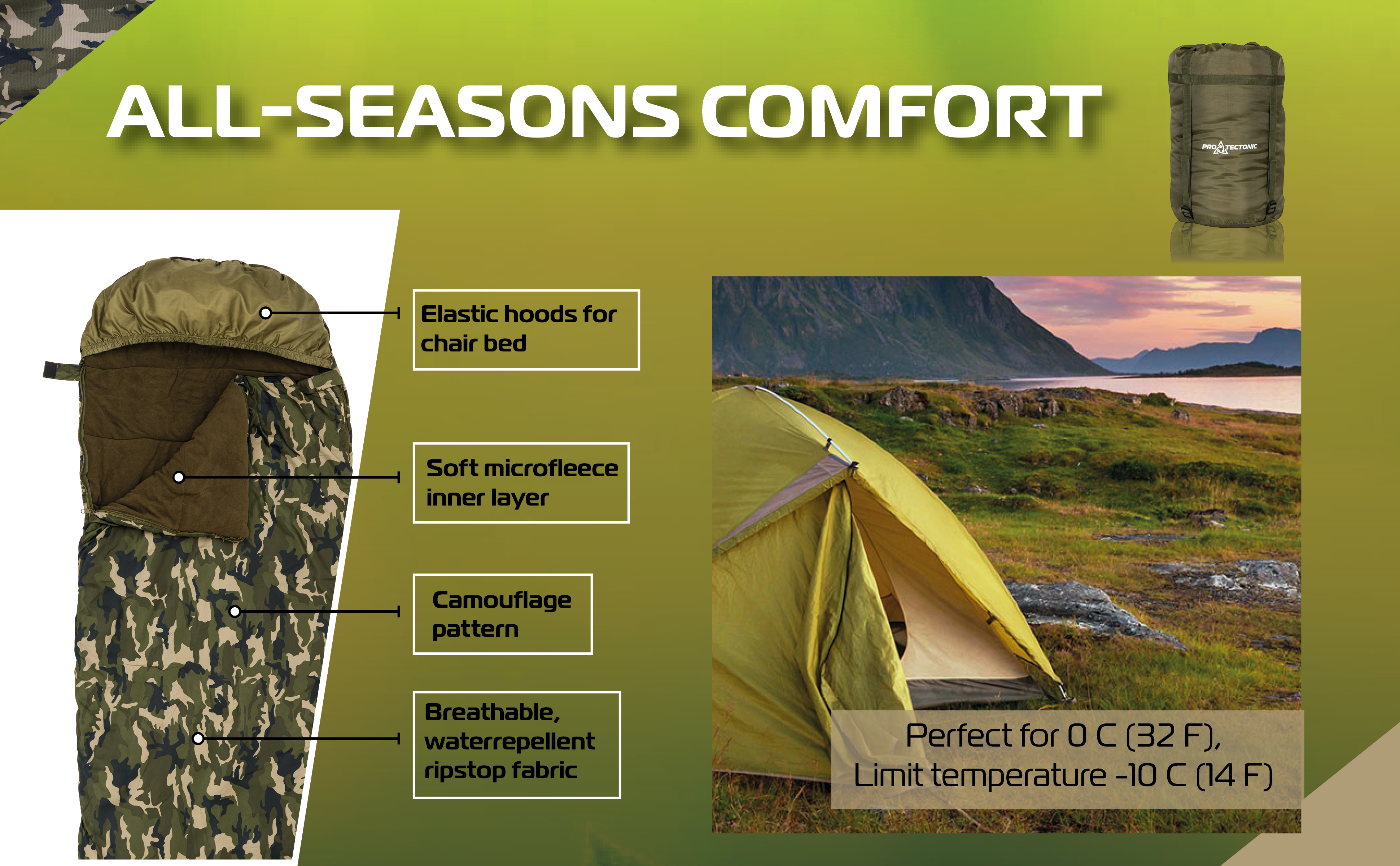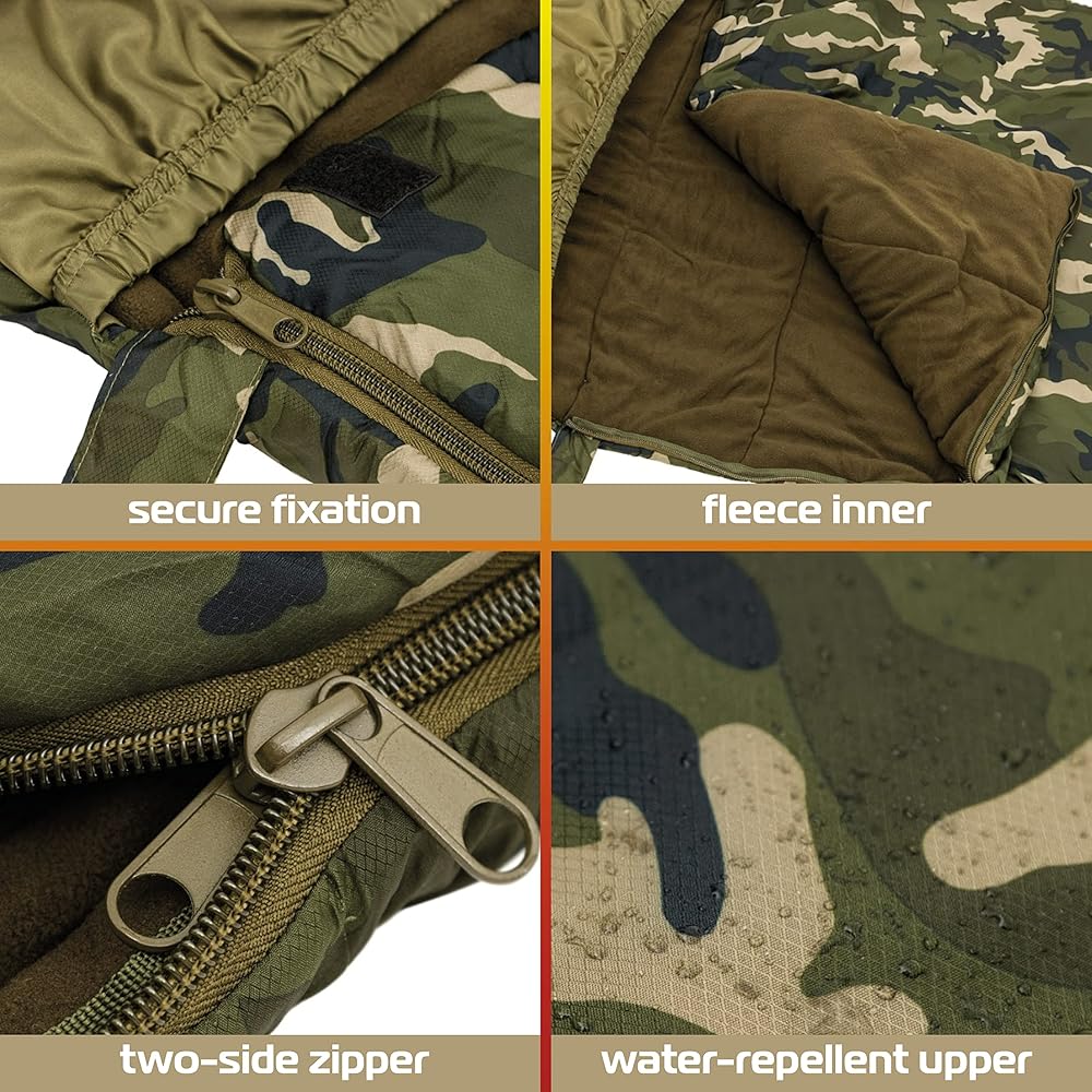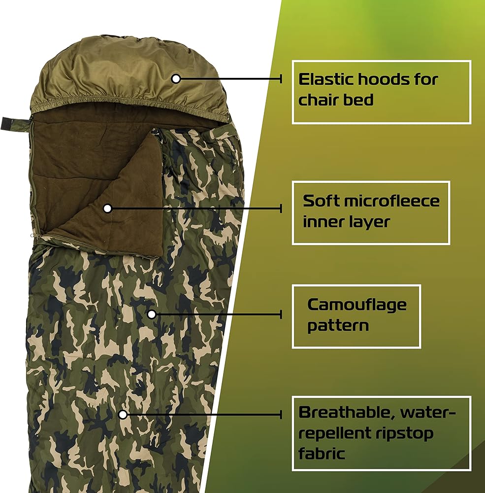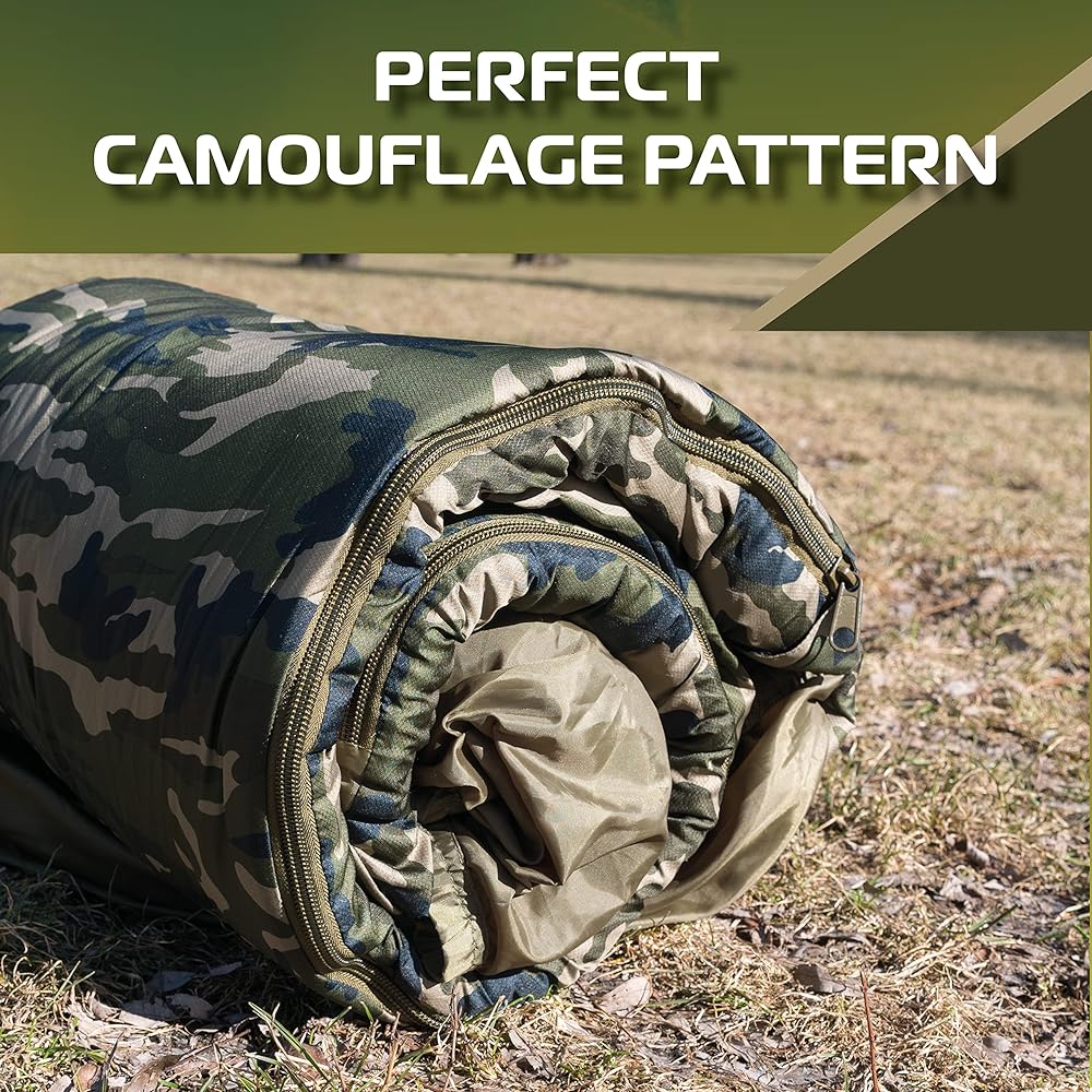 استمتع بأقصى قدر من الراحة والدفء مع حقيبة النوم المموهة الخاصة بنا!