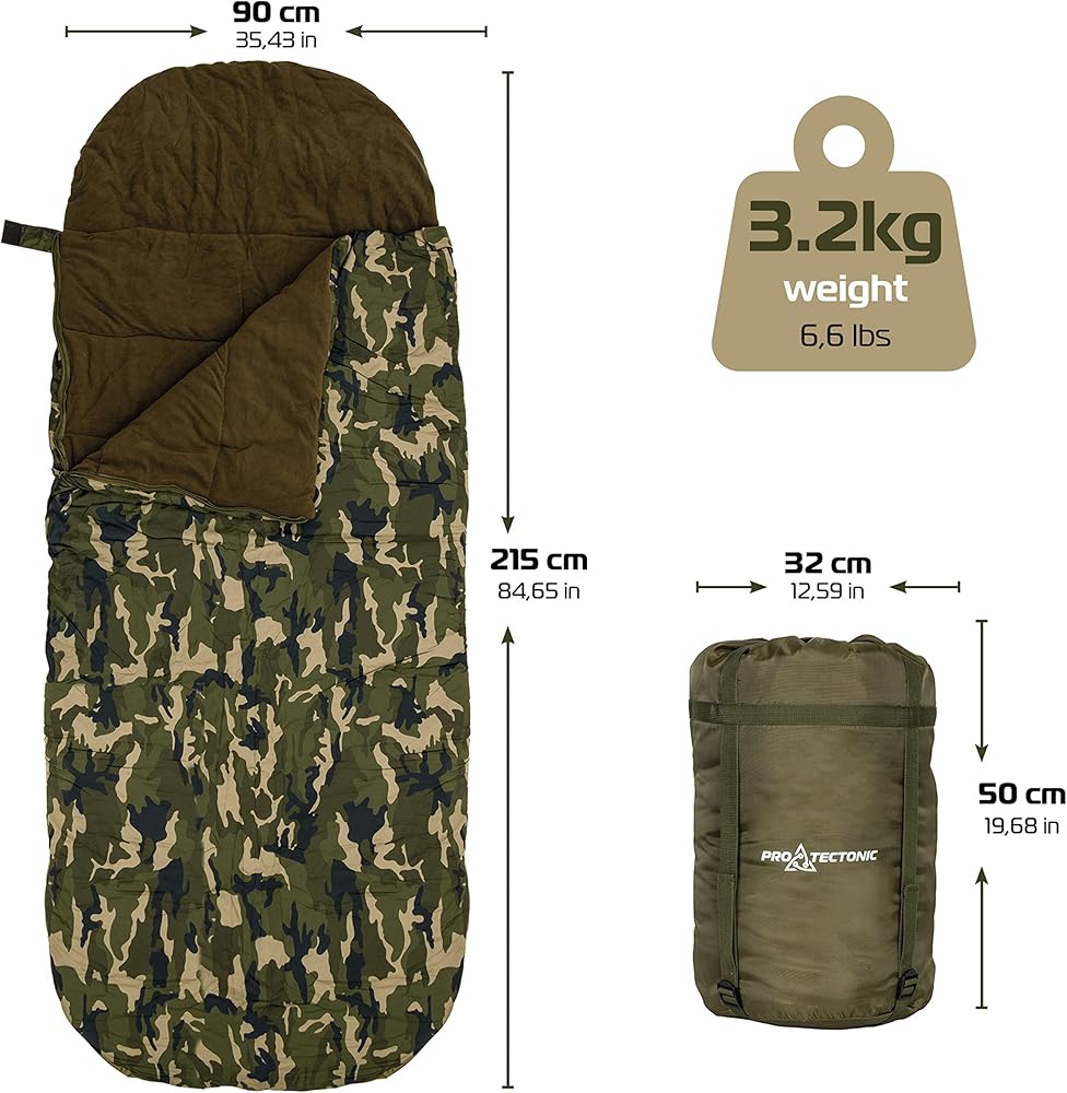تتميز حقيبة النوم الخاصة بنا بأنها خفيفة الوزن للغاية وقابلة للحمل وتتميز بنمط مموه يجعلها مثالية للتخييم والمشي لمسافات طويلة وصيد الأسماك وغيرها من المغامرات والأنشطة الخارجية. تجمع حقيبة النوم بروتكتونيك للبالغين بين العملية والراحة، وتتميز بسحابات سريعة الفك مضادة للتشويش، ومشابك تثبيت قابلة للتعديل وأغطية مرنة تسمح لك بتثبيت الحقيبة بأمان على سرير الكرسي والاستمتاع بنوم مريح.