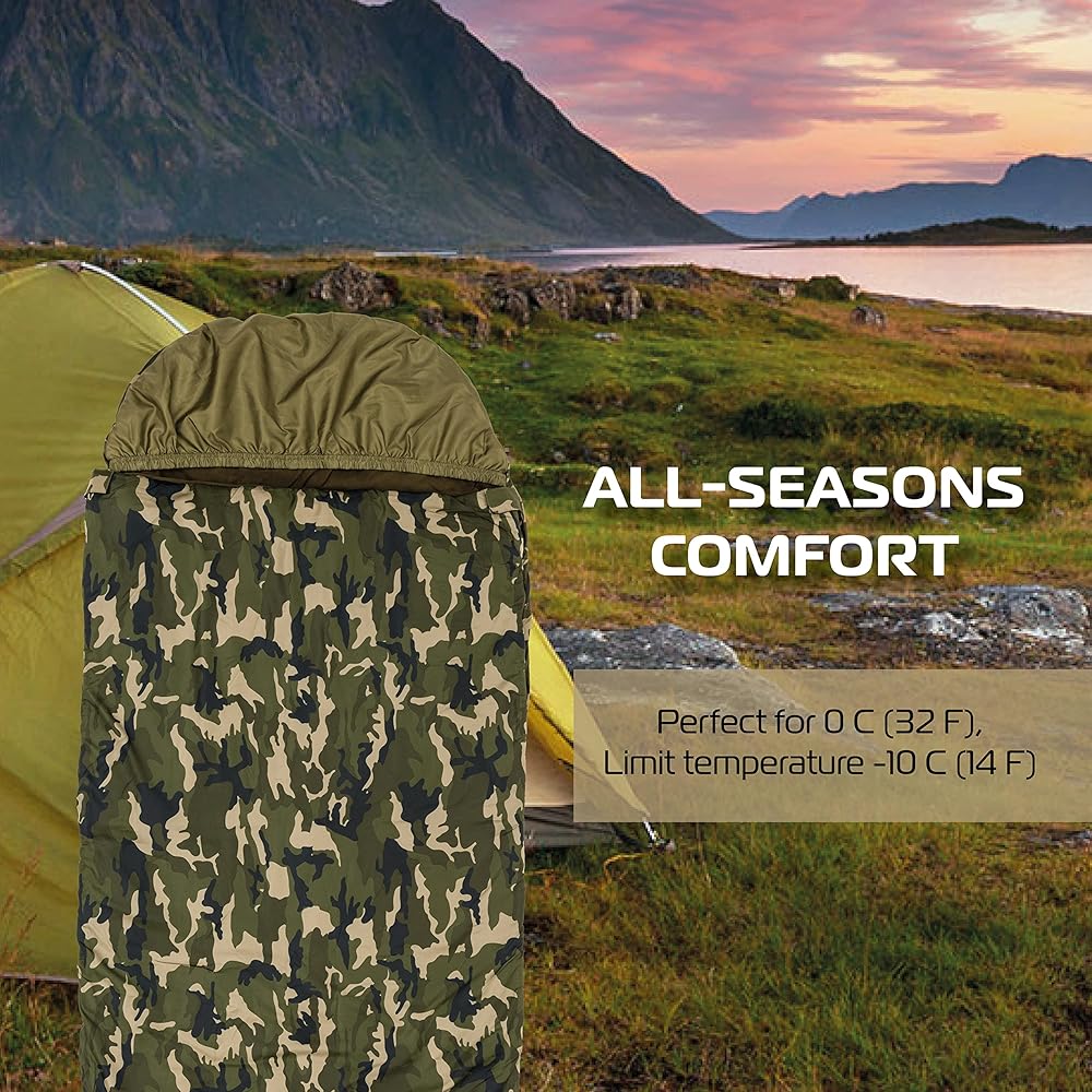 اكياس نوم للبالغين من بروتيكتونيك - كيس نوم 4 مواسم للطقس البارد والدافئ - كيس نوم مموه للتخييم والمشي لمسافات طويلة - كيس نوم عسكري خفيف الوزن ومحمول