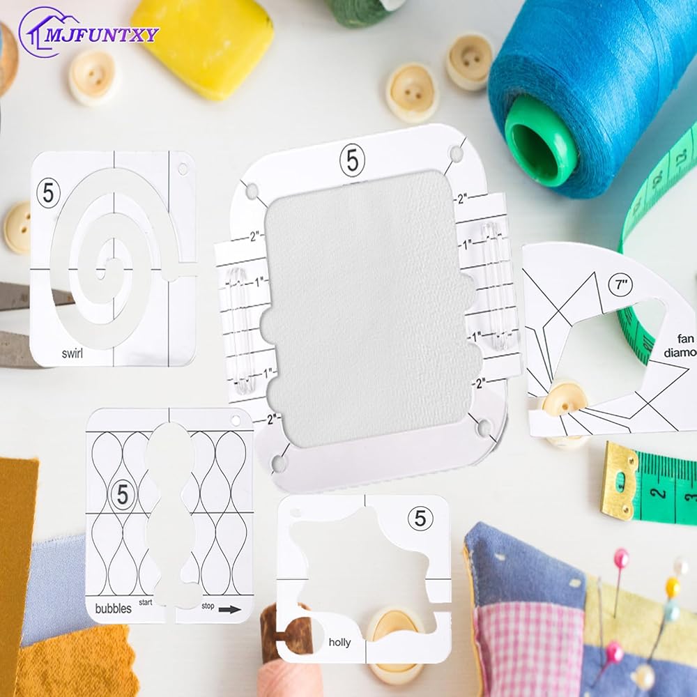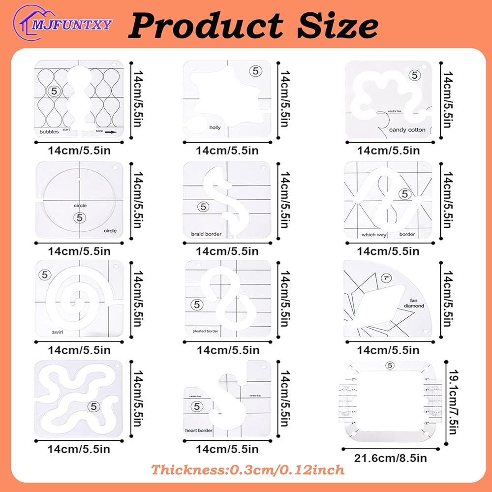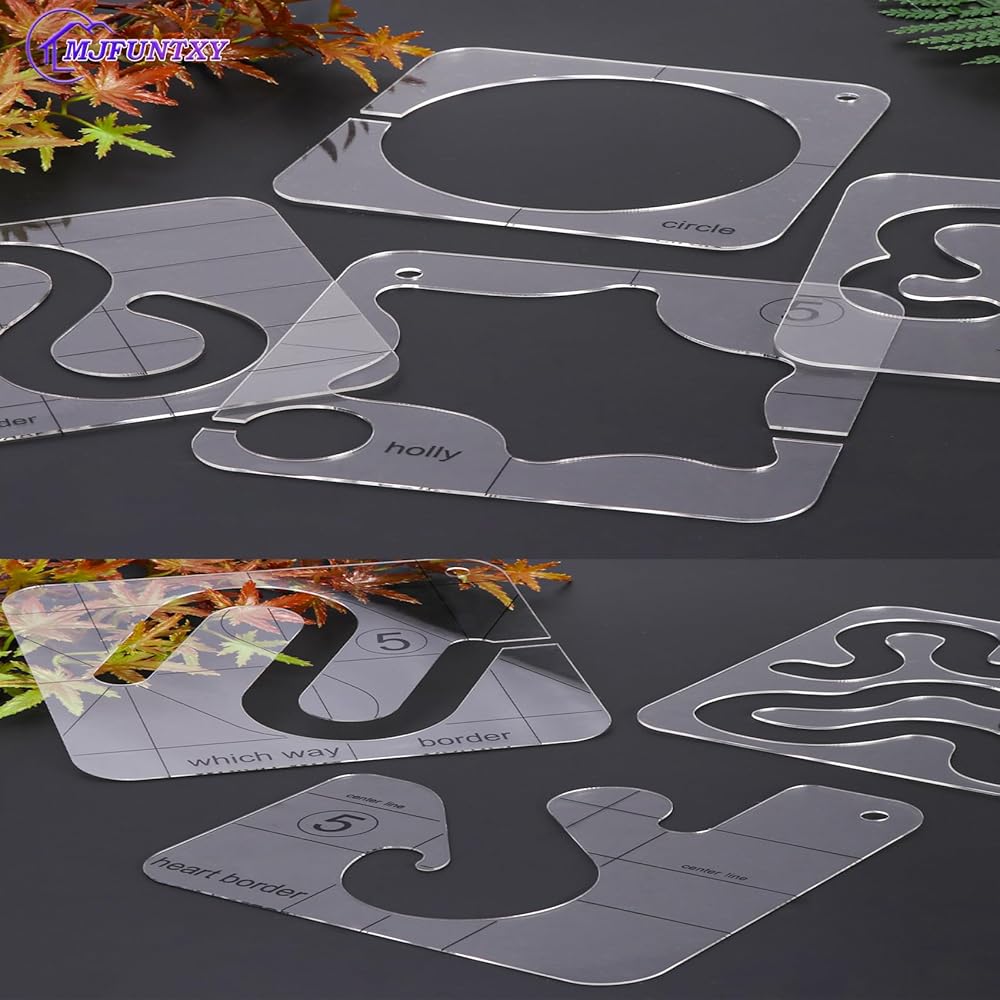 تصميم شفاف: لون شفاف، قالب المسطرة متعدد الوظائف يخلق رؤية جيدة للنسيج أثناء التبطين. أنها مريحة بالنسبة لك لخياطة DIY. لا حاجة لوضع علامة على الساندويتش أو إعادة صنع أخطاء خياطة اللحف