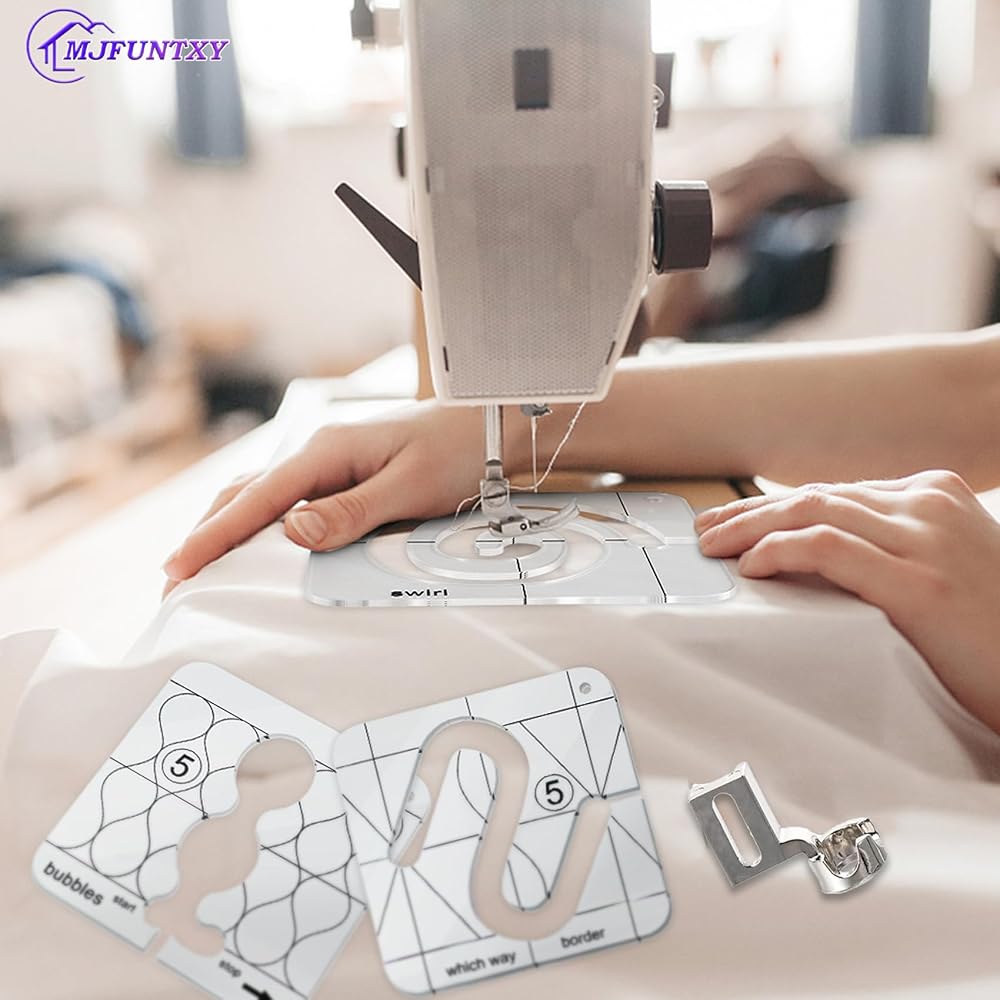 سهل الاستخدام: ضع القالب على القماش وقم بمحاذاة مسطرة قدم ماكينة الخياطة. ثم قم بتدوير المسطرة 180 درجة واستمر في الخياطة. يمكنك عمل تصميمات مختلفة عن طريق وضع المسطرة