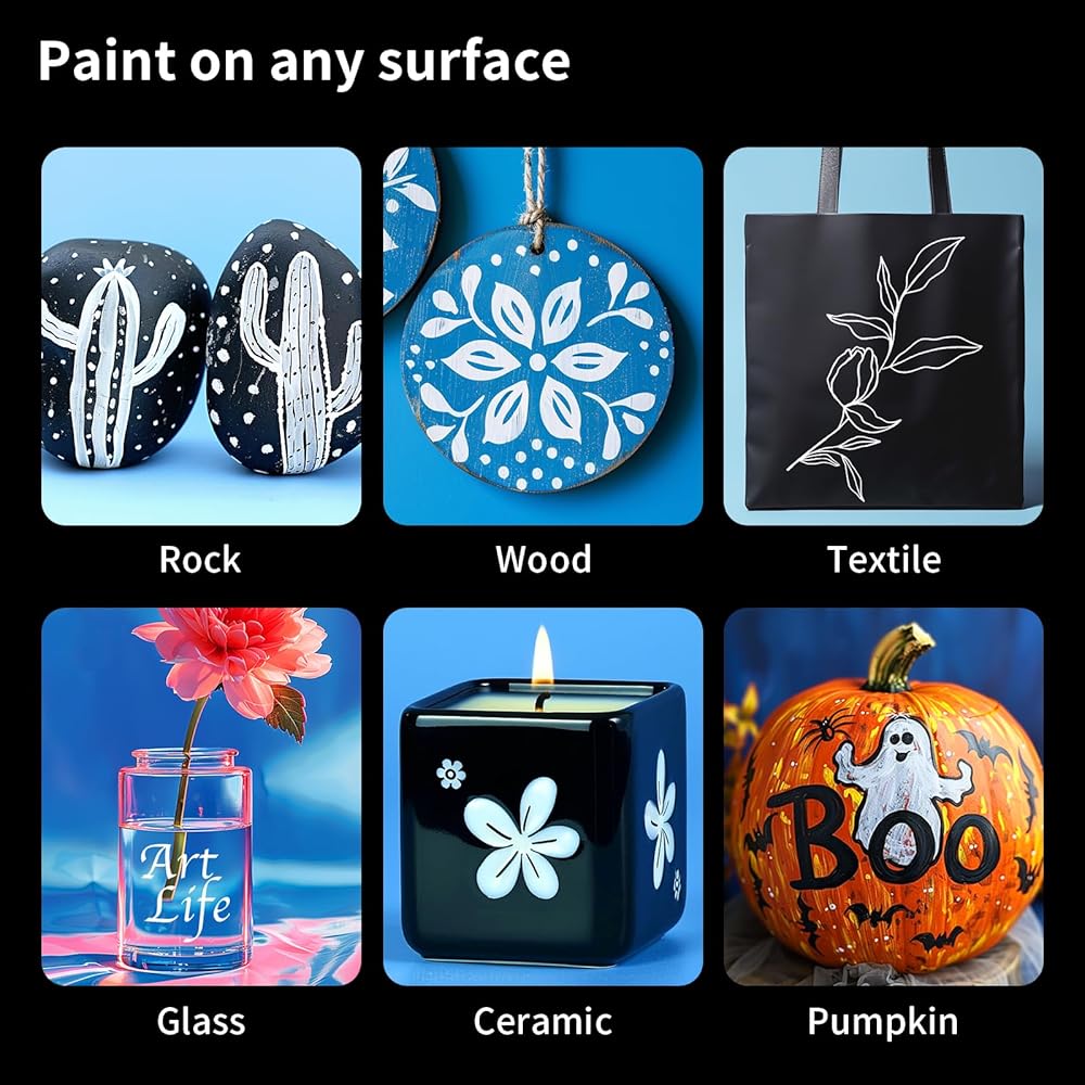 • جودة فاخرة: تتميز هذه العبوة السوداء من أقلام الطلاء بطلاء أكريليك عالي الجودة ورأس متين يجف بشكل غير شفاف، لذلك لا تحتاج إلى صنع طبقة ثانية! قلم الطلاء الأسود الدائم خالٍ من الأحماض ومقاوم للماء ومقاوم للتآكل. إنها أداة رائعة للمشروعات الفنية، والحرف اليدوية، والتلوين، وبطاقات المعايدة، وصنع الملصقات، والرسم، والتظليل.