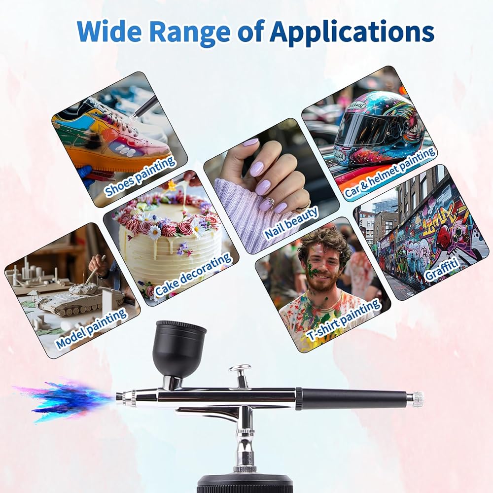 [استخدام واسع] مجموعة فرش الهواء المزودة بضاغط الهواء ليست فقط الأداة المثالية للفنانين والهواة، ولكنها أيضًا رفيقك الفني الشامل، حيث أنها تتفوق في مجموعة متنوعة من التطبيقات مثل الطلاء، ورسم النماذج، والمكياج، تزيين الكيك، والوشم المؤقت، وفن الأظافر، وطلاء السيارات والخوذ، وطلاء القمصان، وطلاء النوافذ والمزيد