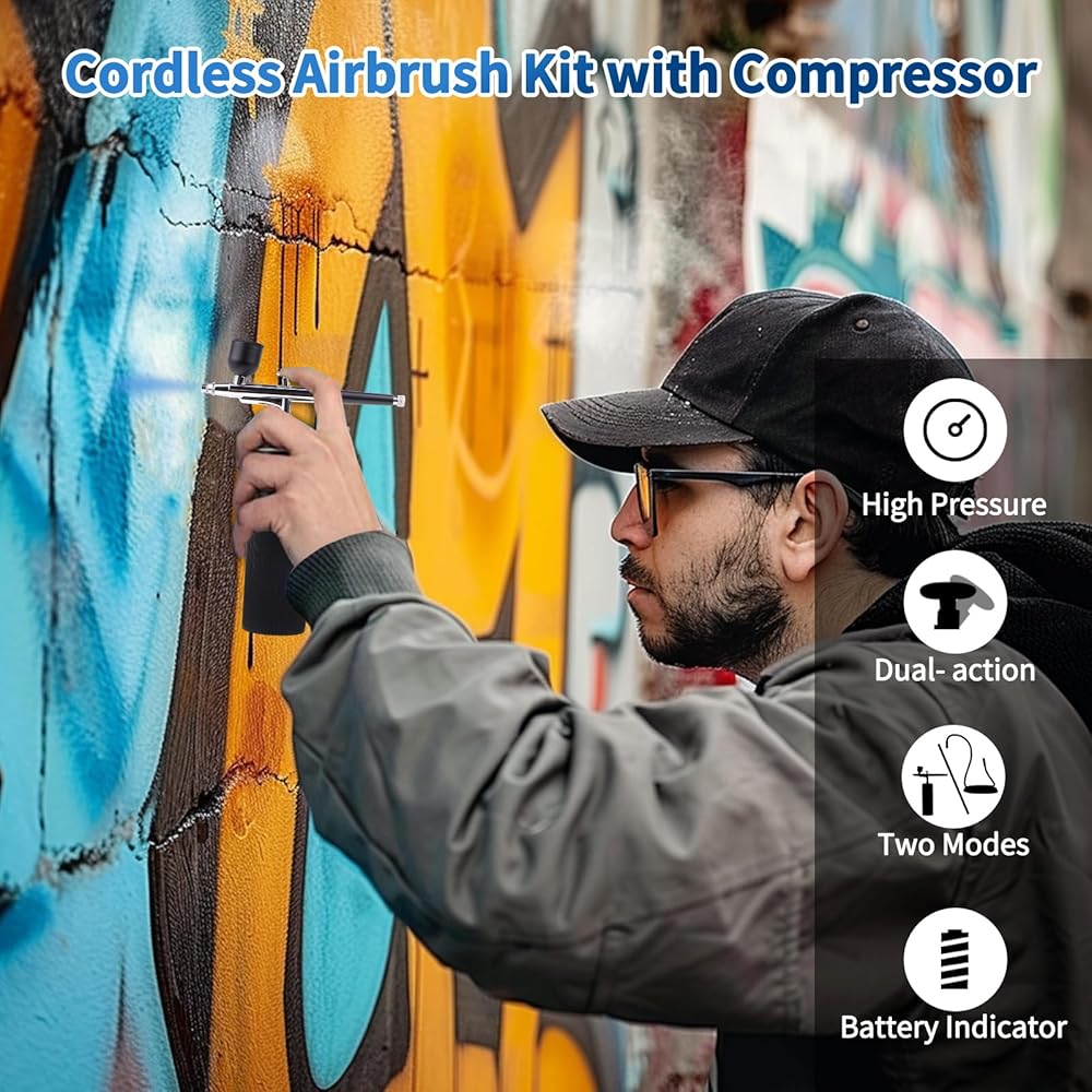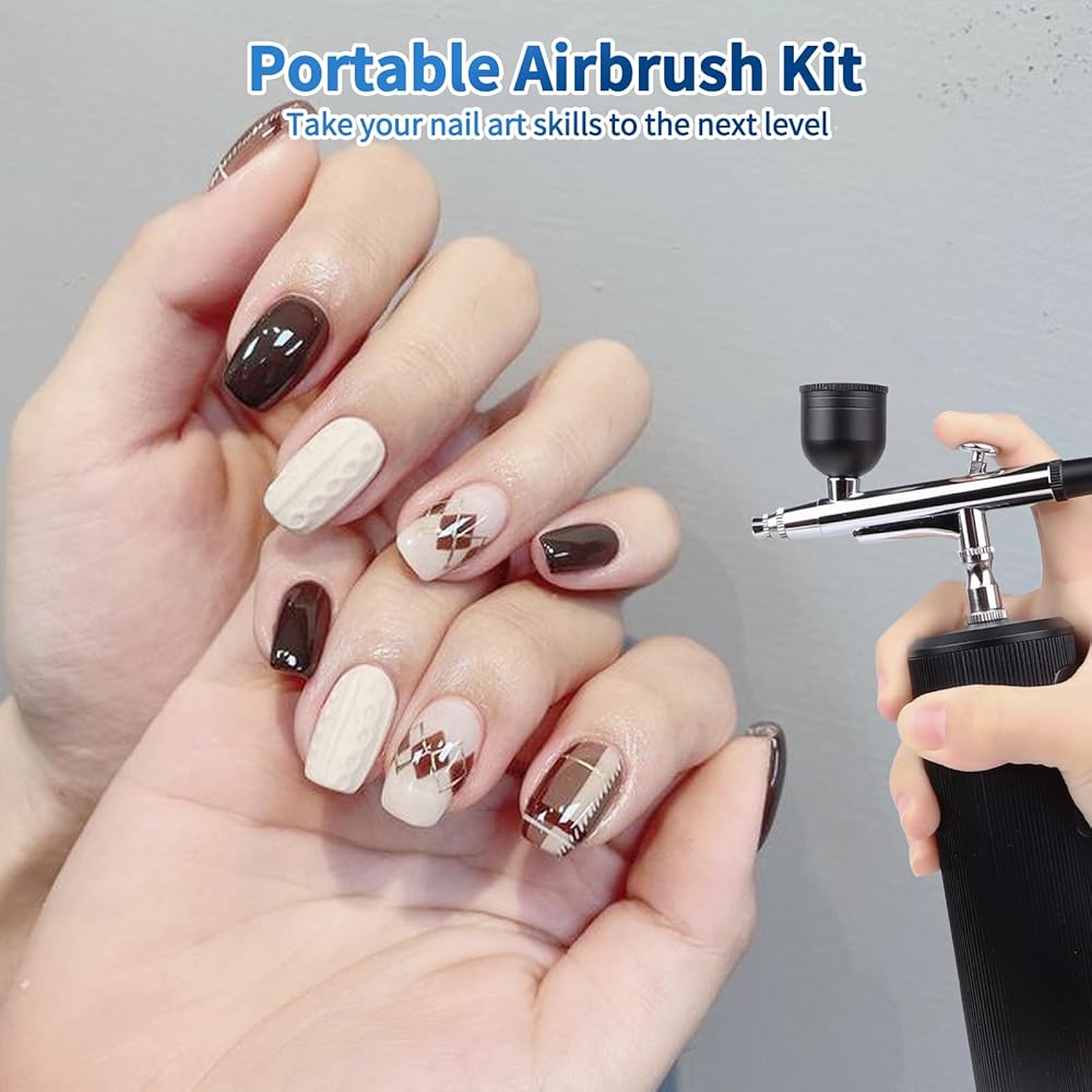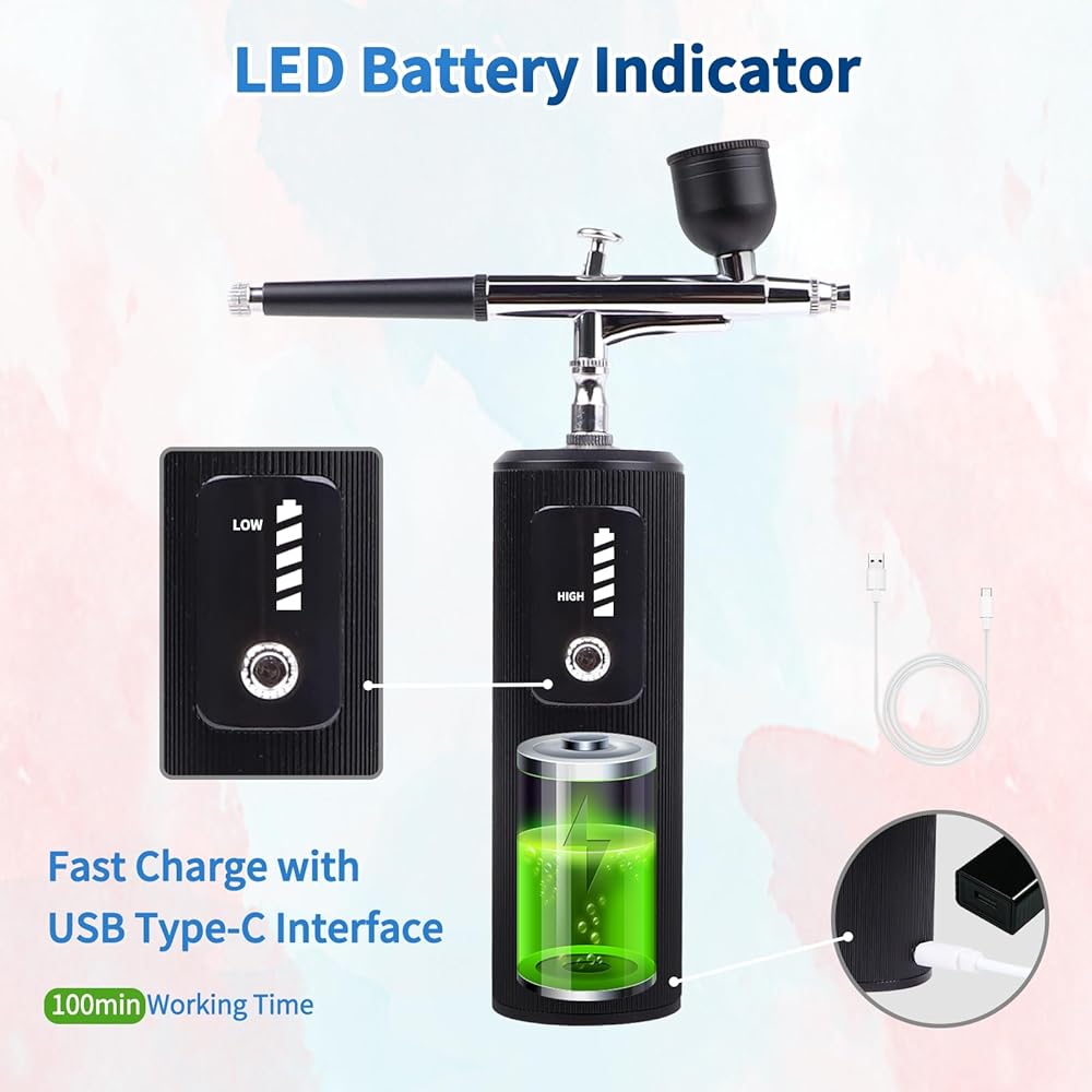مجموعة فرش البخاخة Eazy2hD للأظافر مع مجموعة فرش البخاخة اللاسلكية الضاغط القابلة لإعادة الشحن ذات الضغط العالي وعدم الانسداد مع فوهة 0.3/0.5 مم ومجموعة فرشاة التنظيف للفنون وتزيين الكيك والمكياج والرسم