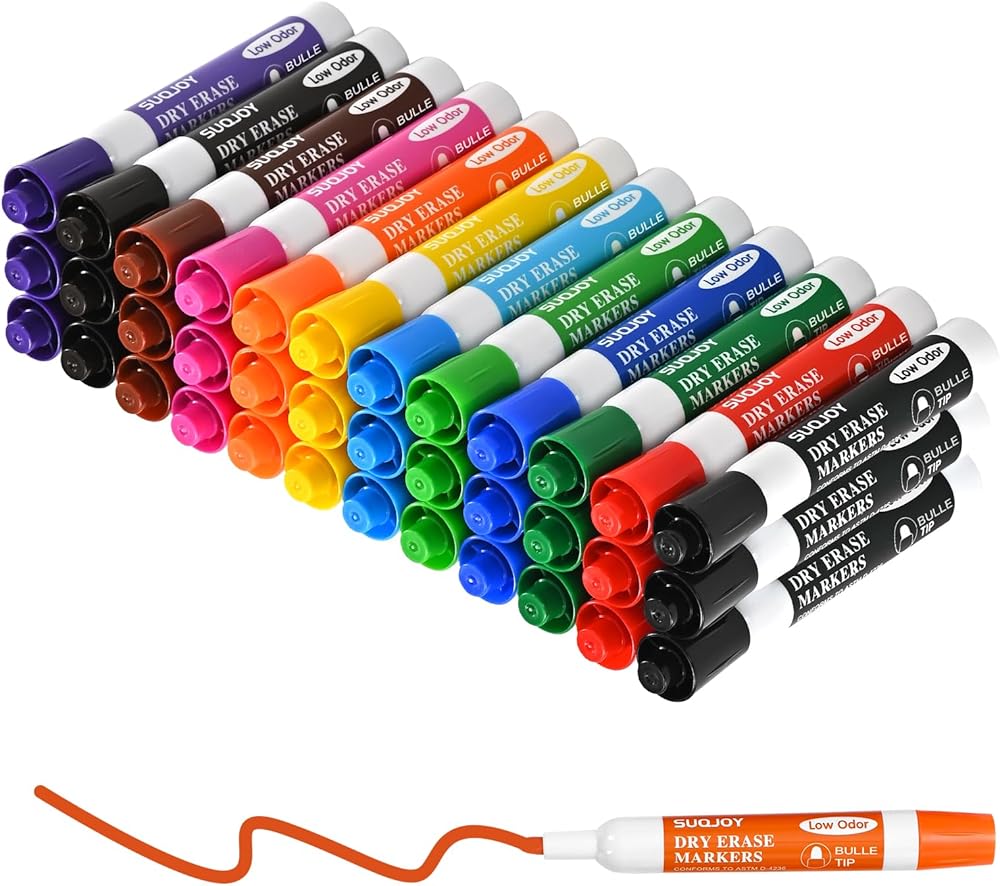 رائحة منخفضة وغير سامة: أقلام المسح الجافة بحبر آمن، ورائحة منخفضة وغير سامة، وصديقة للبيئة. المنتج مطابق للمواصفة ASTM D-4236. يرجى ملاحظة: هذه المجموعة غير مناسبة للأطفال دون سن 3 سنوات ويرجى تخزين الأقلام أفقيًا لتجنب تسرب الحبر.