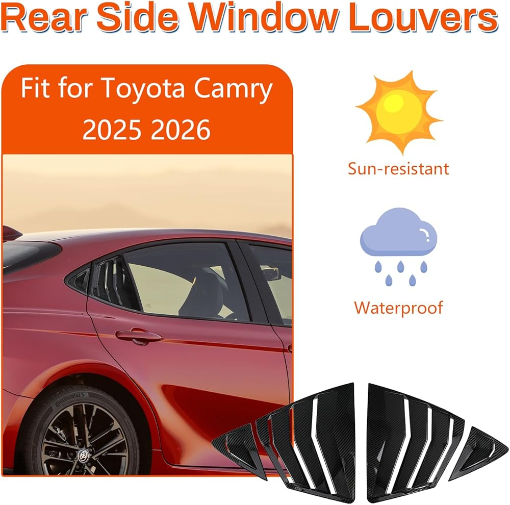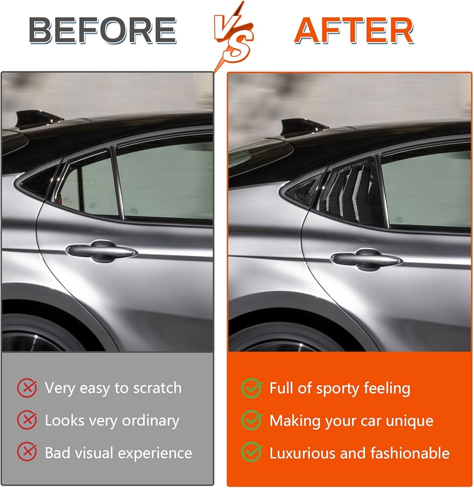 • Stylish Carbon Fiber Design: Crafted from high-quality carbon fiber, these louvers not only add a sleek and modern touch to your Camry but also resist wear and tear, ensuring long-lasting durability and a standout appearance.