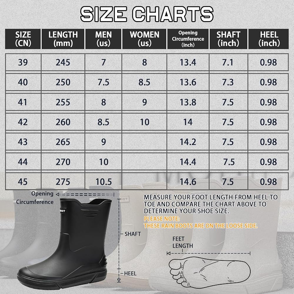 الموضة: تتميز أحذية المطر متوسطة الساق بجزء علوي كلاسيكي غير لامع ومقدمة مستديرة، وتتوافق أحذية الحديقة هذه بسهولة مع مجموعة متنوعة من الملابس لتمنحك شعورًا جيدًا طوال اليوم.