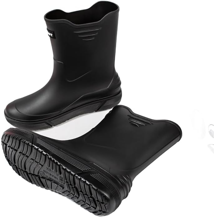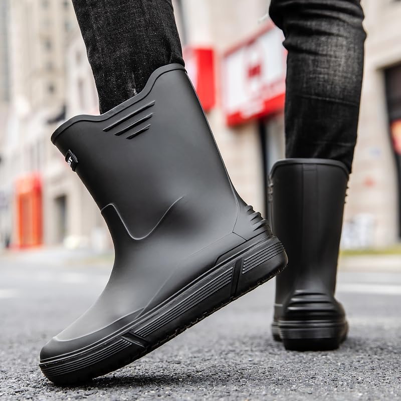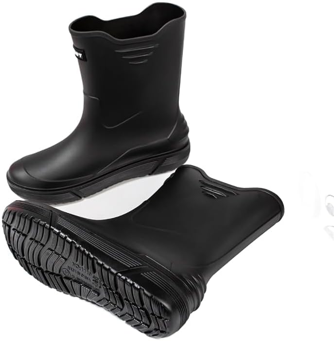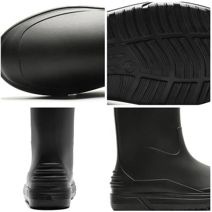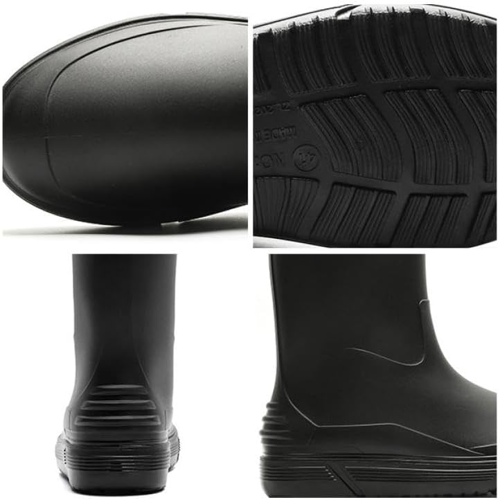 مقاومة للماء بنسبة 100%: أحذية المطر الرجالية سلسة ومقاومة للماء، ومكونة من قطعة واحدة، مما يضمن جفاف قدميك ونظافتها طوال اليوم.