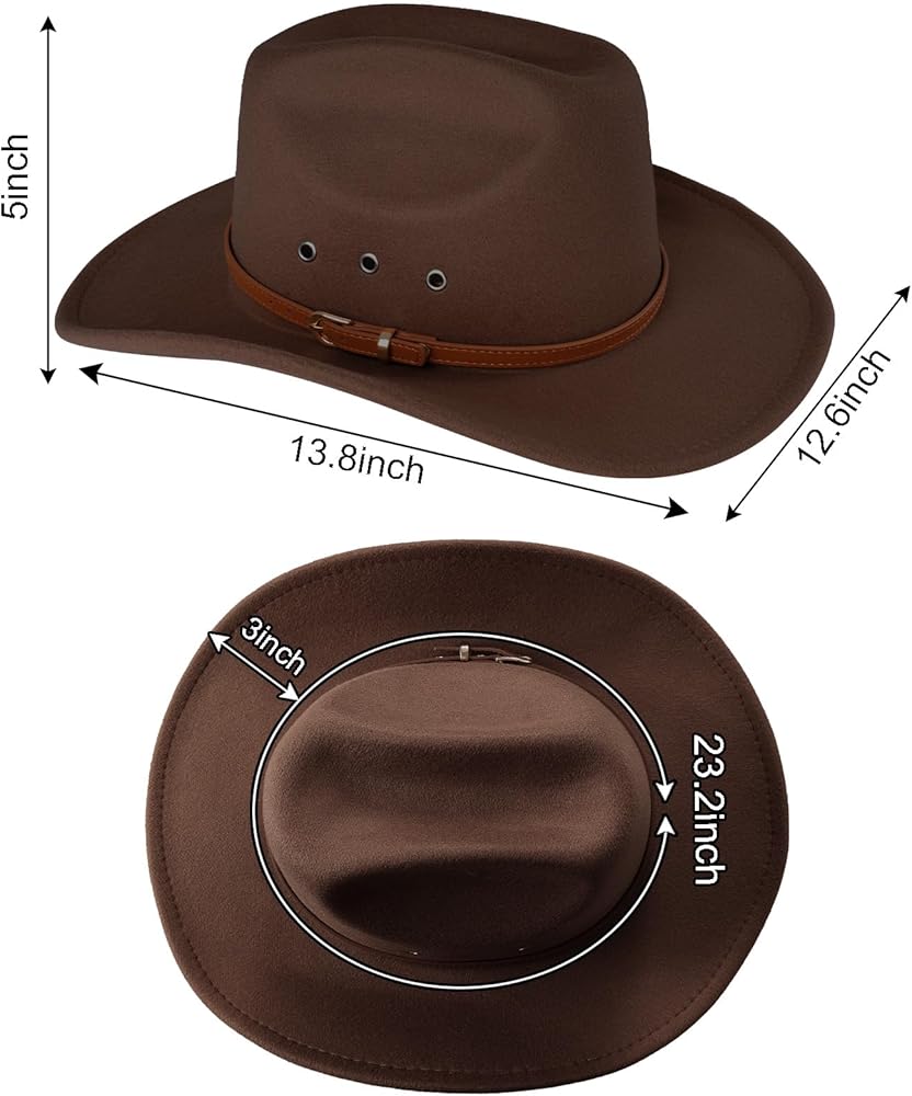 【المقاس】: محيط قبعة رعاة البقر 23.2 بوصة/59 سم، عرض الحافة: 3 بوصات/7.5 سم. يرجى الرجوع إلى صورنا للحصول على أبعاد محددة. إنها تناسب معظم الرجال والنساء، والحافة العريضة تجعلها مناسبة لمختلف المناسبات، سواء كانت كاجوال يوم خارج المنزل، أو حفلة ذات طابع خاص.