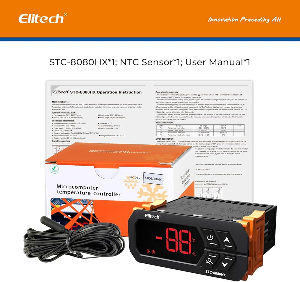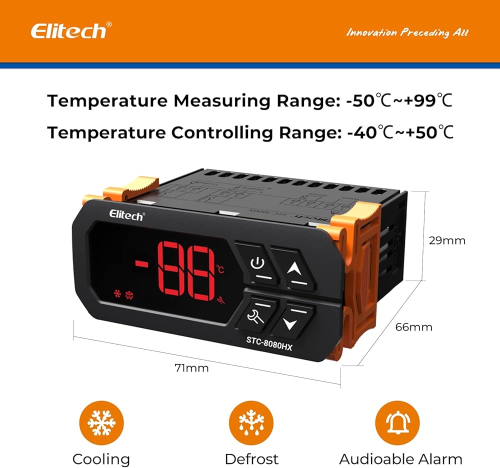 Elitech STC-8080HX Digital Temperature Controller Centigrade Thermostat 3-Stage 110V