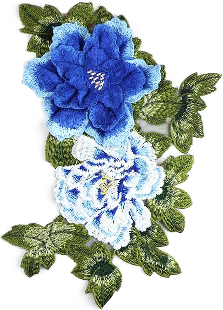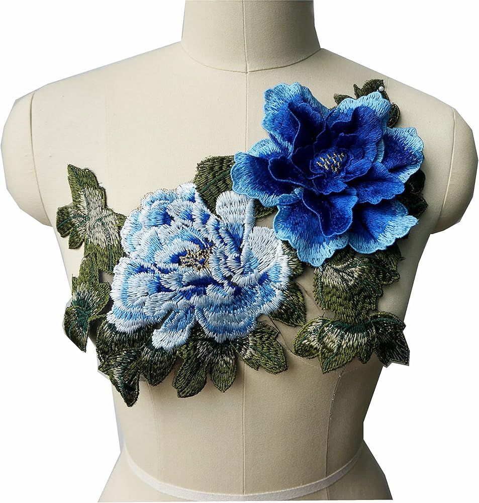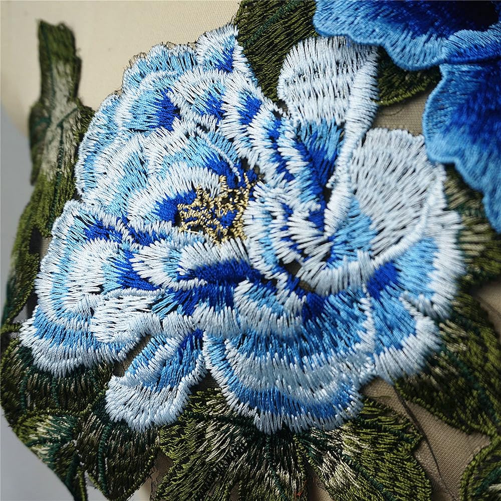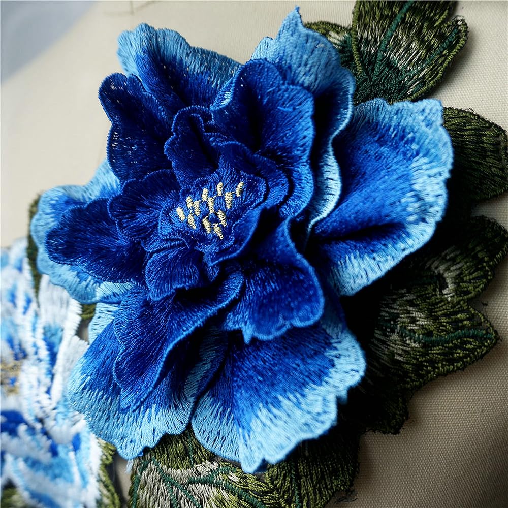 كبيرة مطرزة 3D زهور الفاوانيا أوراق خياطة بقع الزركشة الزفاف الزفاف فستان الزفاف المساء تشيونجسام فستان ديي ديكور مركبة (أزرق)