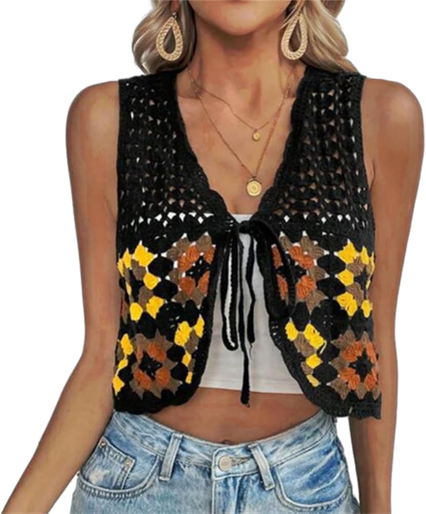 المطابقة: سترة الكروشيه مناسبة للارتداء مع القمصان والقمصان بدون أكمام والبكيني والفساتين والسراويل القصيرة والجينز والتنانير. يمكن ارتداء السترة ذات الأربطة الأمامية مع قمصان مختلفة، مما يخلق نمطًا أكثر جمالاً ويوميًا