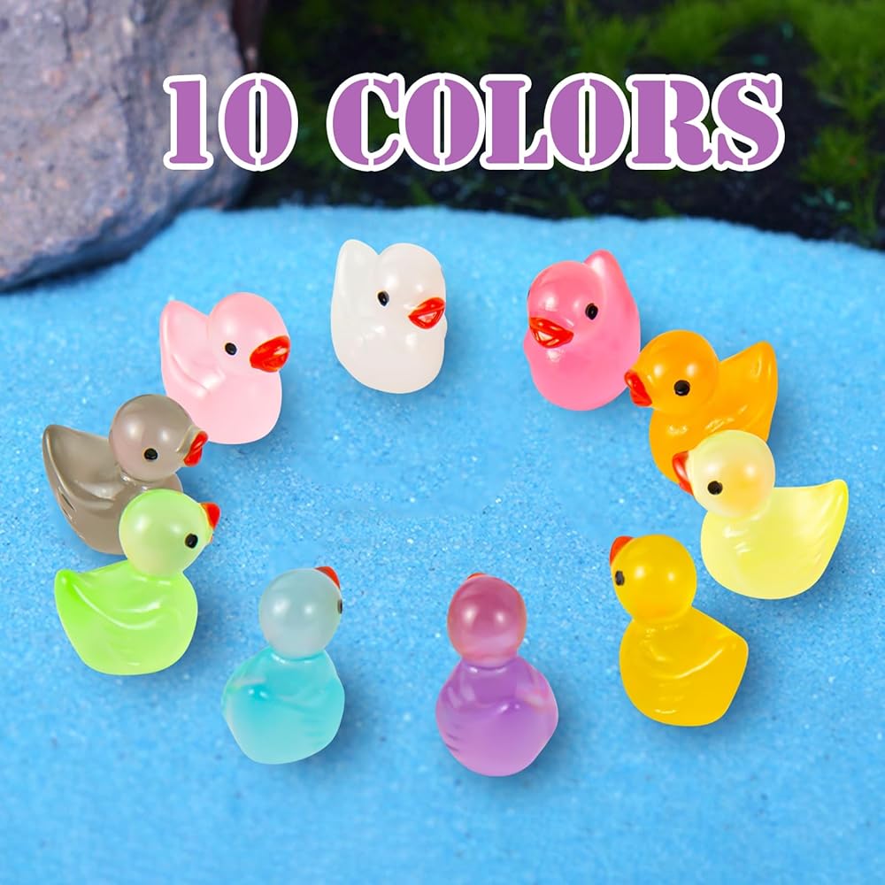 1000 قطعة من تمثال بطة صغيرة مضيئة من الراتنج لحديقة الجنية والمناظر الطبيعية وحوض السمك في وعاء مزحة للنباتات، لعبة زينة DIY للاختباء، ملحقات بيت الدمى المصغرة، تتوهج في الظلام، 10 ألوان