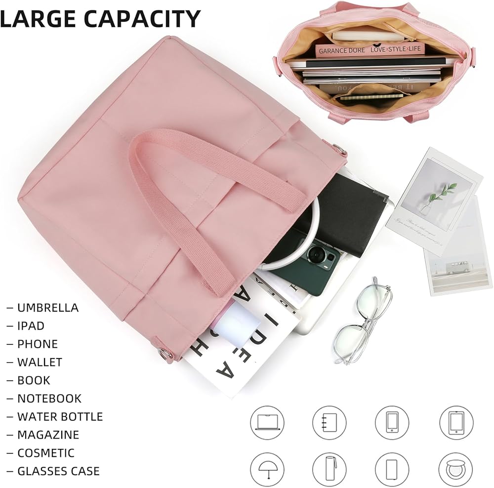 • Durable Material: This canvas tote bag for women is made of high quality canvas, and equipped with adjustable shoulder straps, which is wear-resistant and good in texture. The outer fully zipper closure can effectively prevent your items from falling