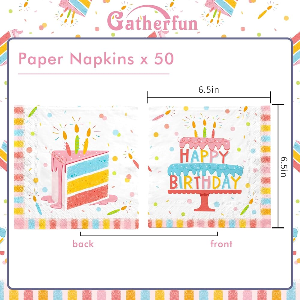مجموعة لوازم حفلات عيد ميلاد سعيد - بتصميم كعكة، تتميز بمناديل كعكة عيد ميلاد سعيد، مناسبة للبالغين والأطفال لديكورات أعياد الميلاد (6.5 × 6.5 بوصة، 3 طبقات للاستعمال مرة واحدة، 50 عبوة)
