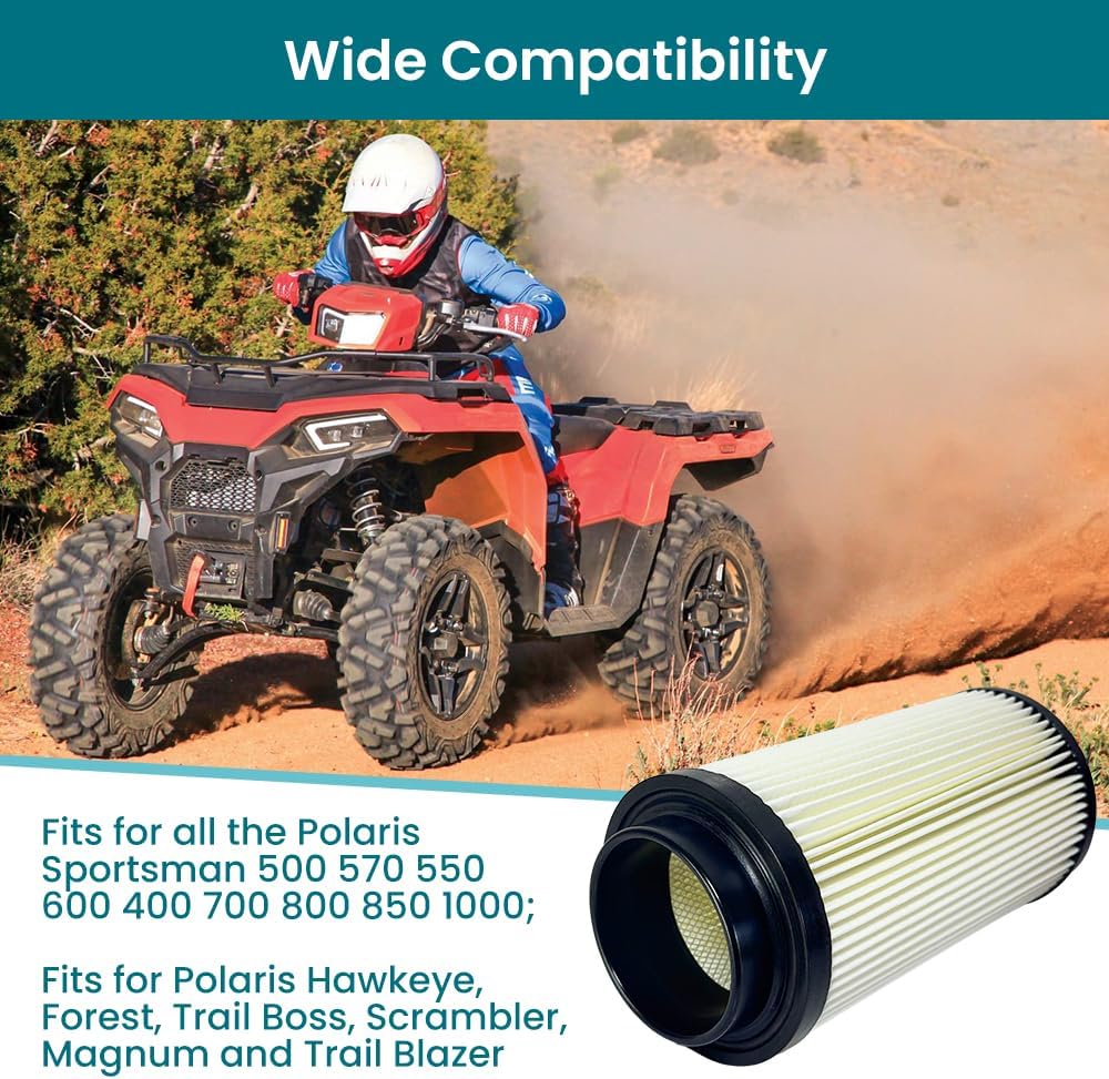 حماية وترشيح فائقين: تضمن فلاتر الهواء هذه الخاصة بـ Polaris تدفق هواء نظيف مع طيات إضافية، مما يحقق ترشيح الغبار بنسبة 99% ويزيد من سعة الأوساخ. سوف تمنع بشكل فعال دخول الجزيئات الصغيرة إلى المحرك، وتوفر حماية موثوقة، وتطيل عمر المحرك وتحافظ على قوة حصانية أعلى.