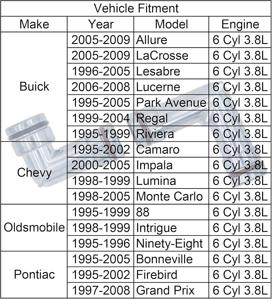 Also fits chevy 1995-2002 Camaro, 2000-2005 Impala, 1998-1999 Lumina, 1998-2005 Monte Carlo.