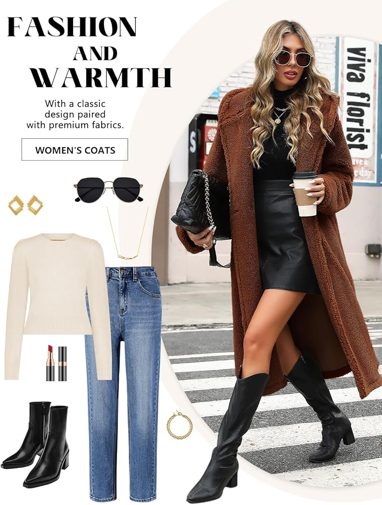 تصميم فريد: تحتوي هذه السترة النسائية الطويلة على جيبين جانبيين، كبيرة بما يكفي لحمل الهاتف الخلوي والمزيد. الملابس المكسوة بالفراء تجعلك تشعر وكأنك دمية دب، ولكنها لا تجعلك تبدو ضخمًا ولكنها تمنحك مظهرًا شتويًا لطيفًا وأنيقًا.