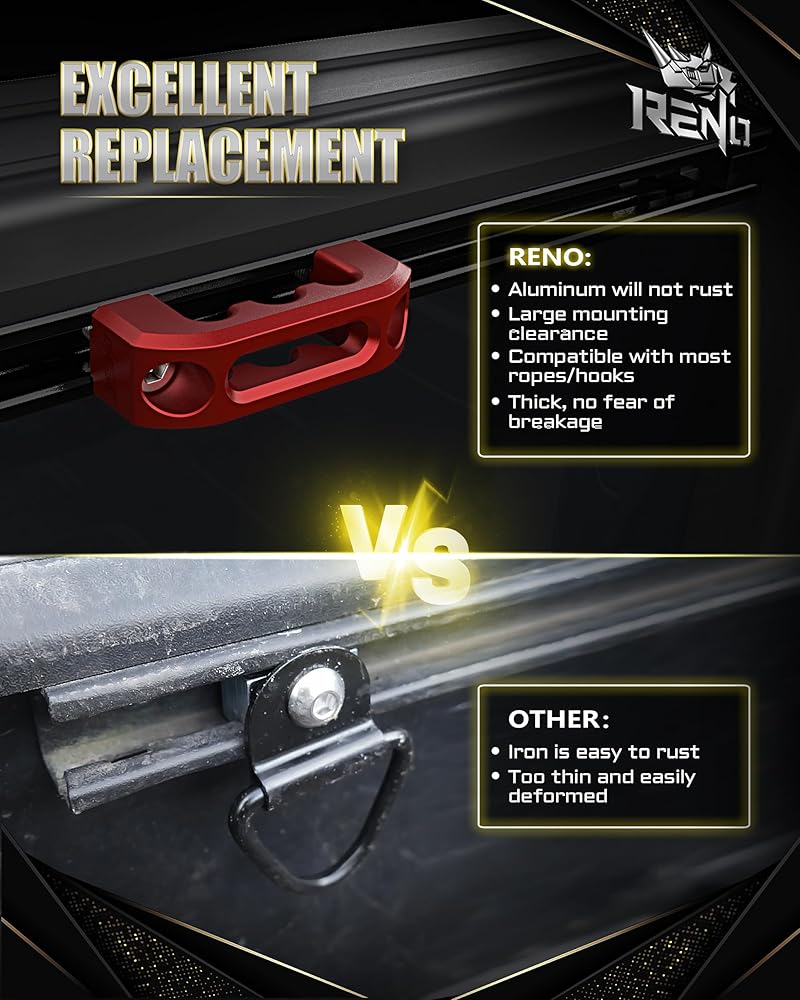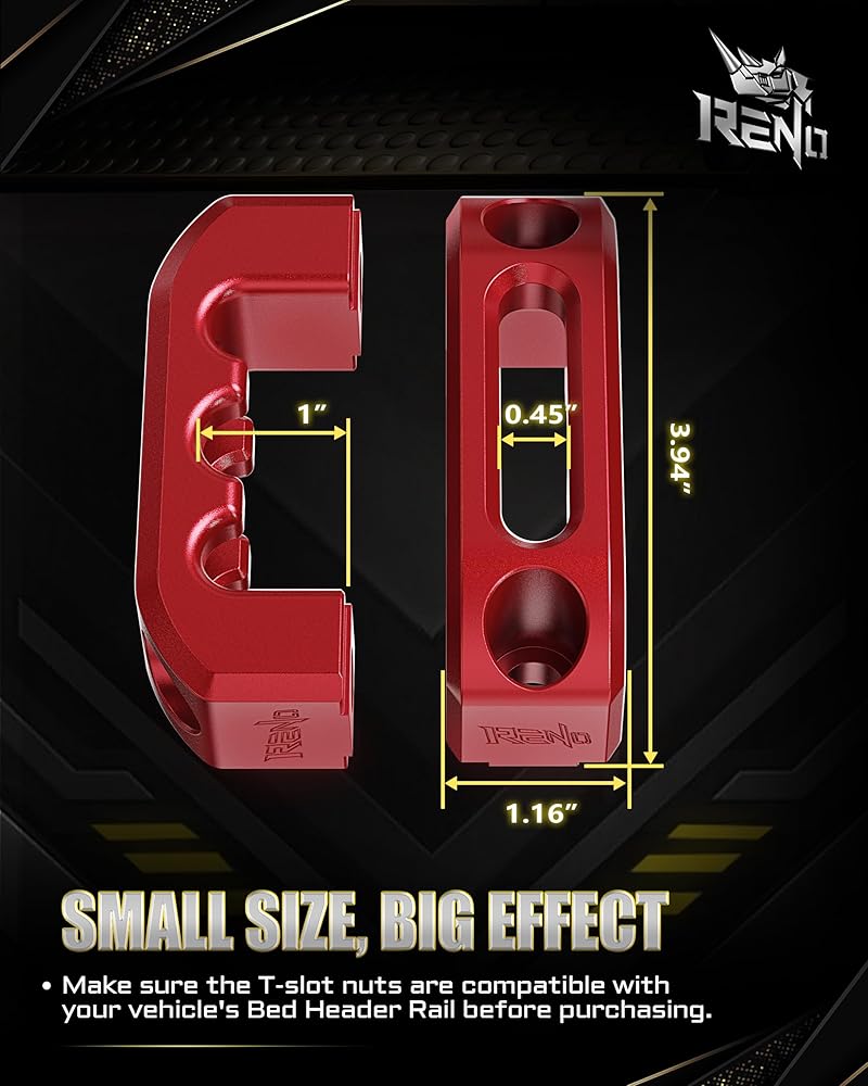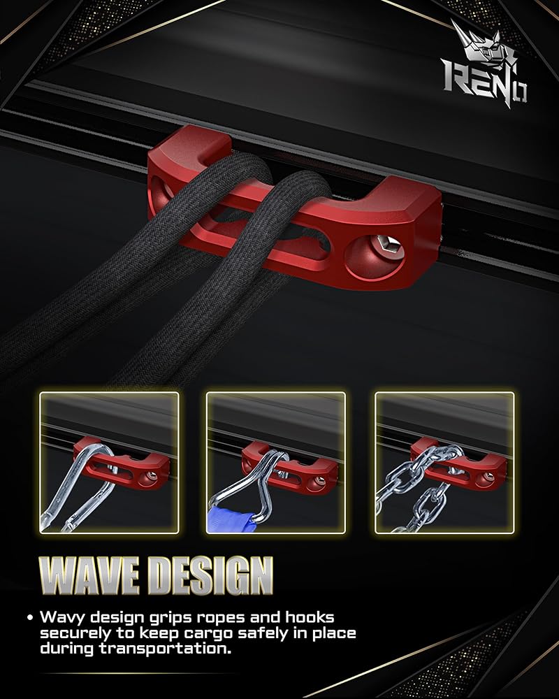 بناء موثوق: مربط حاجز سرير RENO مصنوع من مادة ألومنيوم 7075 عالية الجودة، مما يضمن أنك لا داعي للقلق أبدًا بشأن الصدأ الذي يلحق الضرر بسرير شاحنتك. يمكنك الوثوق بهذه المرابط لحمل حمولتك بشكل آمن دون التقطيع أو التقشر أو المساس بالأداء بمرور الوقت، قادرة على تحمل ما يصل إلى 220 رطلاً من الوزن