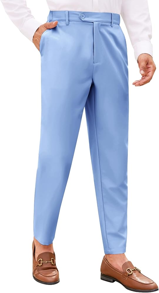القماش: هذه السراويل الرجالية ذات المقاس النحيف مصنوعة من نسيج عالي الجودة، وصديقة للبشرة، ومسامية، وناعمة ومرونة، مما يتيح لك الراحة طوال اليوم. يمكن ارتداؤه في الربيع والصيف والخريف والشتاء.