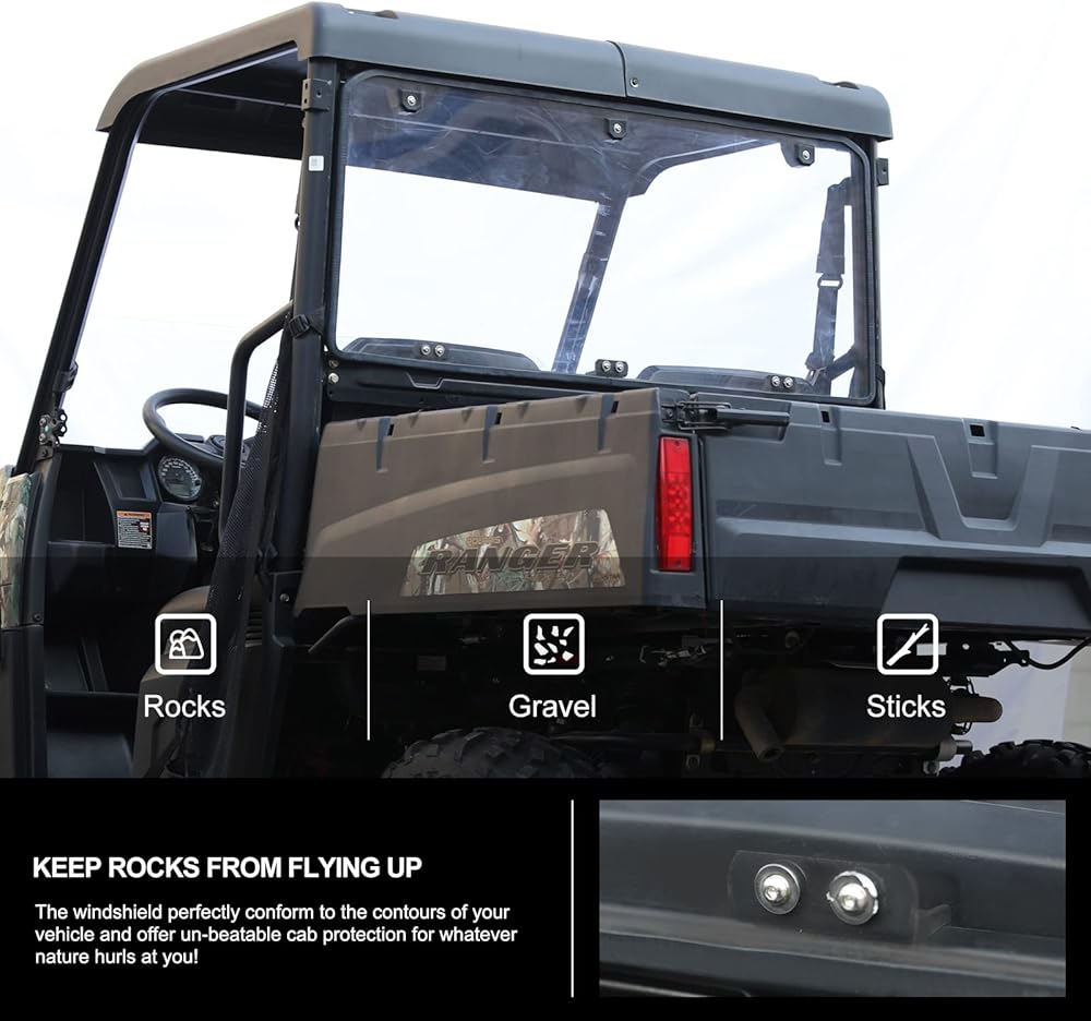 ▶ DURABLE RANGER WINDSHIELD - The windshield made of 1/4 inch thick Scratch-Resistant Polycarbonate to save weight and ensure strength and durability for any type of riding or racing