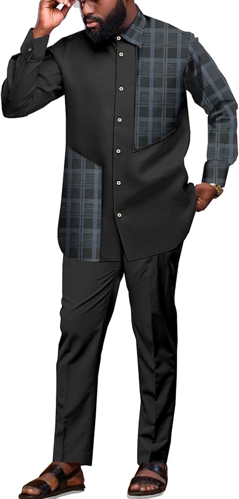 ميزات النمط: قمم - طبقة واحدة بدون بطانة / ياقة ماندرين / كم طويل / زر إغلاق / أقمشة شمع قطنية نقية مطبوعة بنمط كينتي. سراويل من الملابس الأفريقية للرجال بتصميم مناسب، لون ثابت، جيبين، ورباط قابل للتعديل عند الخصر .تم تصميم البدلة الأفريقية لدينا بعناية فائقة للتفاصيل، وهي مصنوعة من أقمشة عالية الجودة تعطي الأولوية للراحة دون المساس بالأناقة.