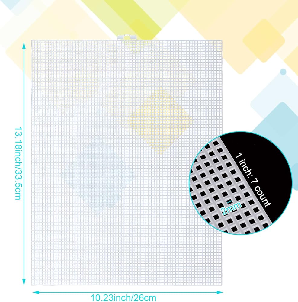【الأبعاد】يبلغ مقاس القماش البلاستيكي 13.5 × 10.5 بوصة، مع 7 فتحات في كل بوصة مما يجعله مناسبًا لمجموعة متنوعة من تقنيات الصناعة.