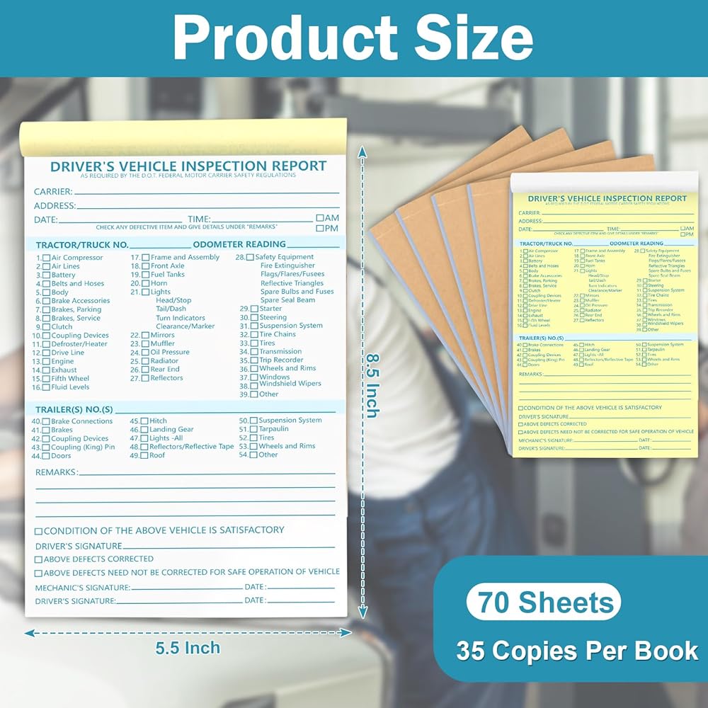 كمية المنتج: يمكنك الحصول على تقرير فحص مركبة واحد، يحتوي كل منها على 35 مجموعة من النماذج. تزن أوراق فحص المركبات اليومية لدينا 52 جرامًا لكل منها ويتم طباعتها بخط أزرق. تأتي مع ورق نسخ أصفر خالي من الكربون بكمية كافية لتلبية احتياجات الاستخدام الخاصة بك، مما يضمن لديك ما يكفي من الإمدادات لتلبية احتياجاتك.