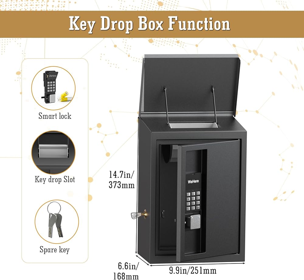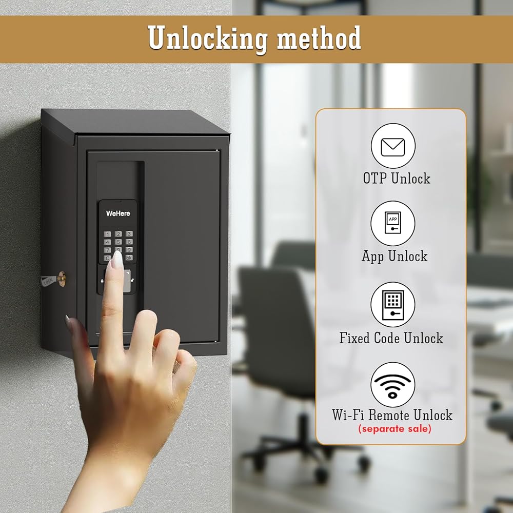 صندوق إيداع المفاتيح من WeHere مع قفل ذكي للتركيب على الحائط الخارجي، صندوق إرجاع المفاتيح للسيارات، تصميم مضاد للسرقة ومقاوم للماء للاستخدام في الهواء الطلق، صندوق إيداع نقدي آمن للعمل بعد ساعات العمل، الفندق، تأجير السيارات