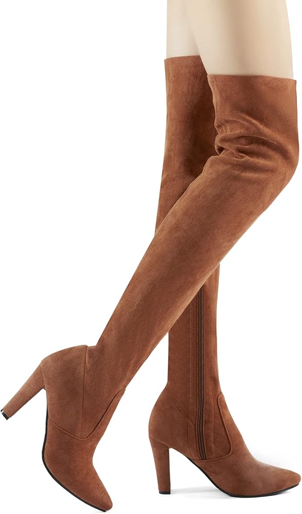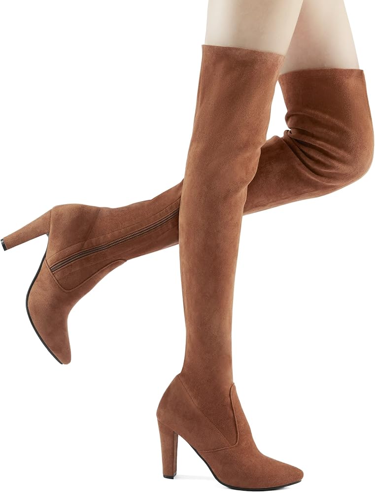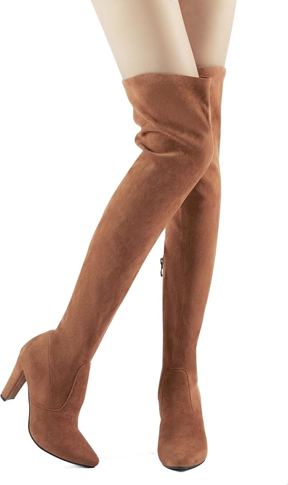 Rubber sole Heel measures approximately 3.5" The chunky heel is the suitable height to show off your beautiful legs for all day walking comfort. Made of high quality elastic material, the thigh high boots are adjusted repeatedly to slim fit your legs. The length of thigh high boots are nicely designed for elongating your legs to perfection.