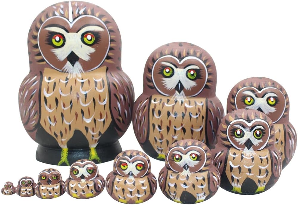 دودة الشتاء لطيف حية شكل بطن كبير أحمر عيون مستديرة البني البومة اليدوية خشبية التعشيش الدمى الروسية ماتريوشكا الدمى مجموعة 10 قطع للأطفال لعبة عيد ميلاد ديكور المنزل