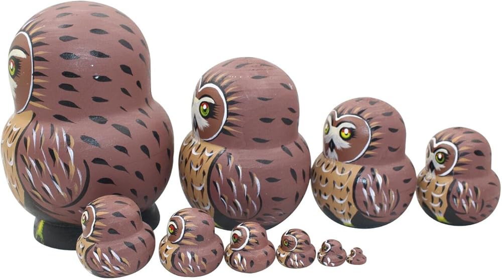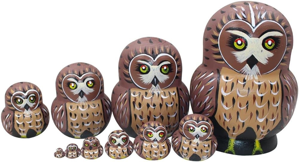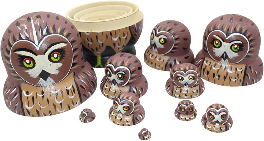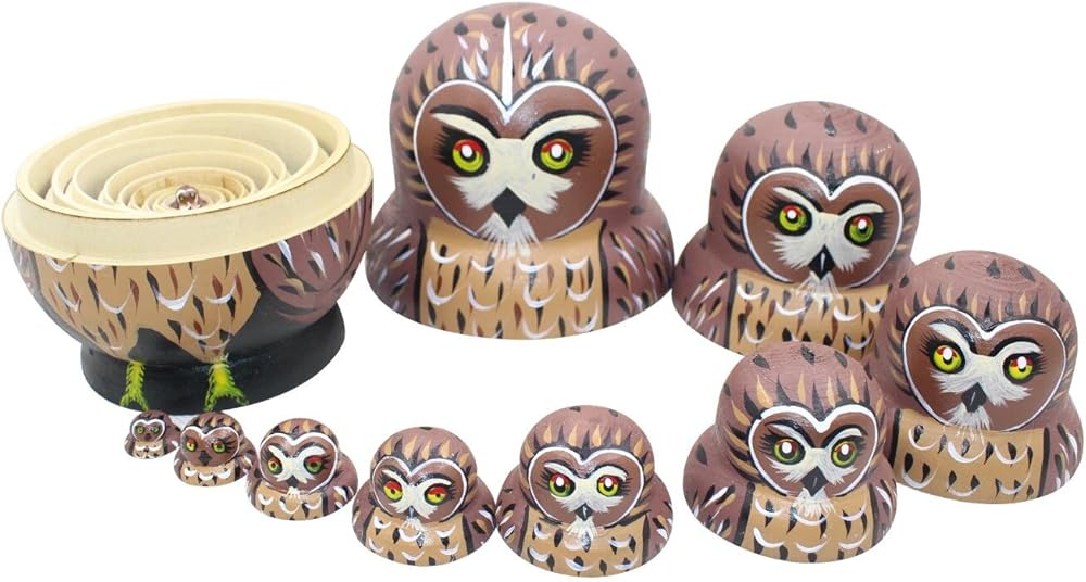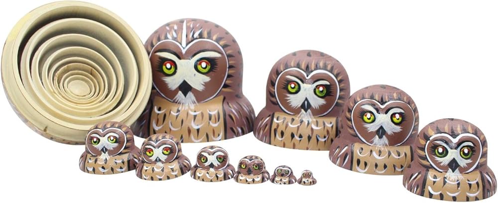 • جميع عمليات صنع هذه المجموعة من دمى تعشيش البومة الزاهية مصنوعة يدويًا