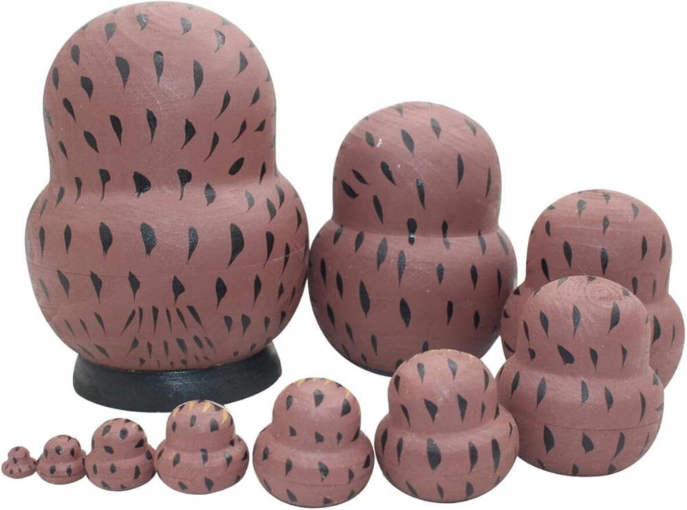 • تحتوي على 10 دمى ذات حجم متناقص موضوعة واحدة داخل الأخرى لتبدو وكأنها واحدة